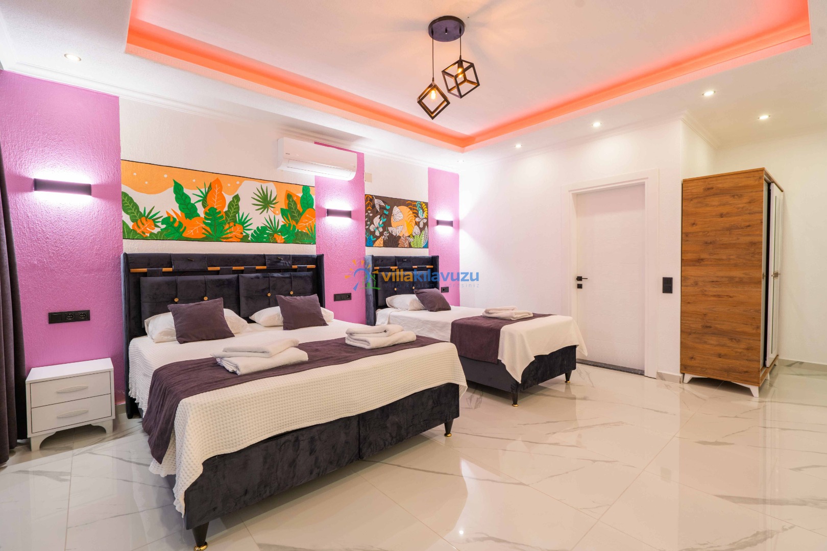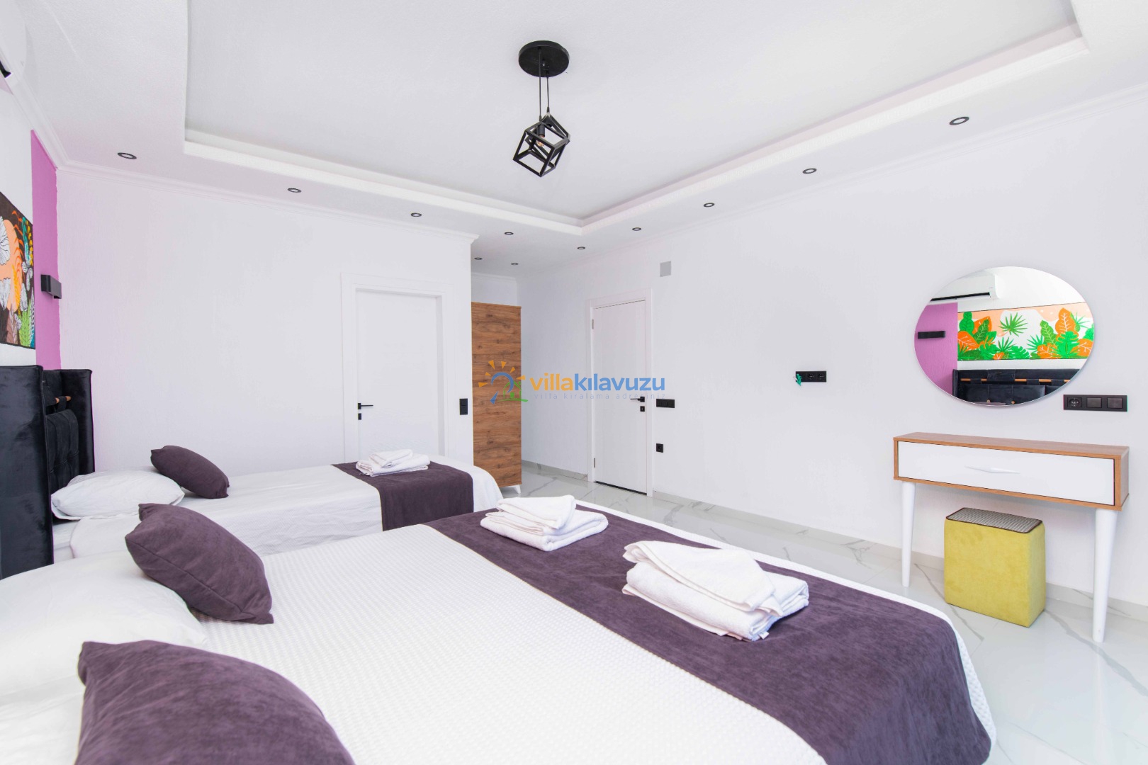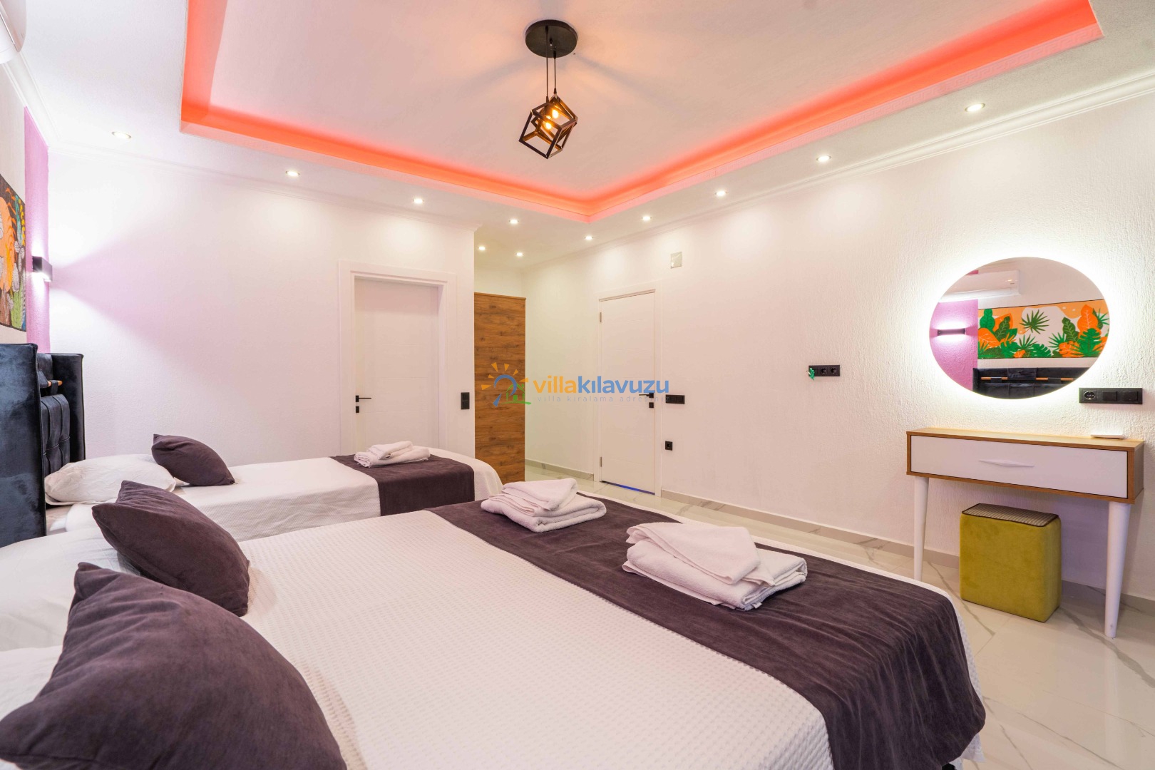 -Villamız 2 yatak odasına sahip olup 5 kişilik konaklama kapasitesine sahiptir.