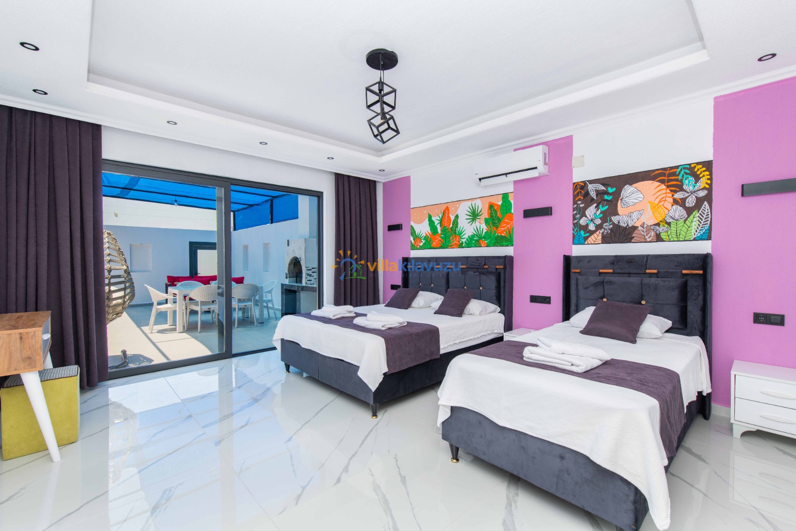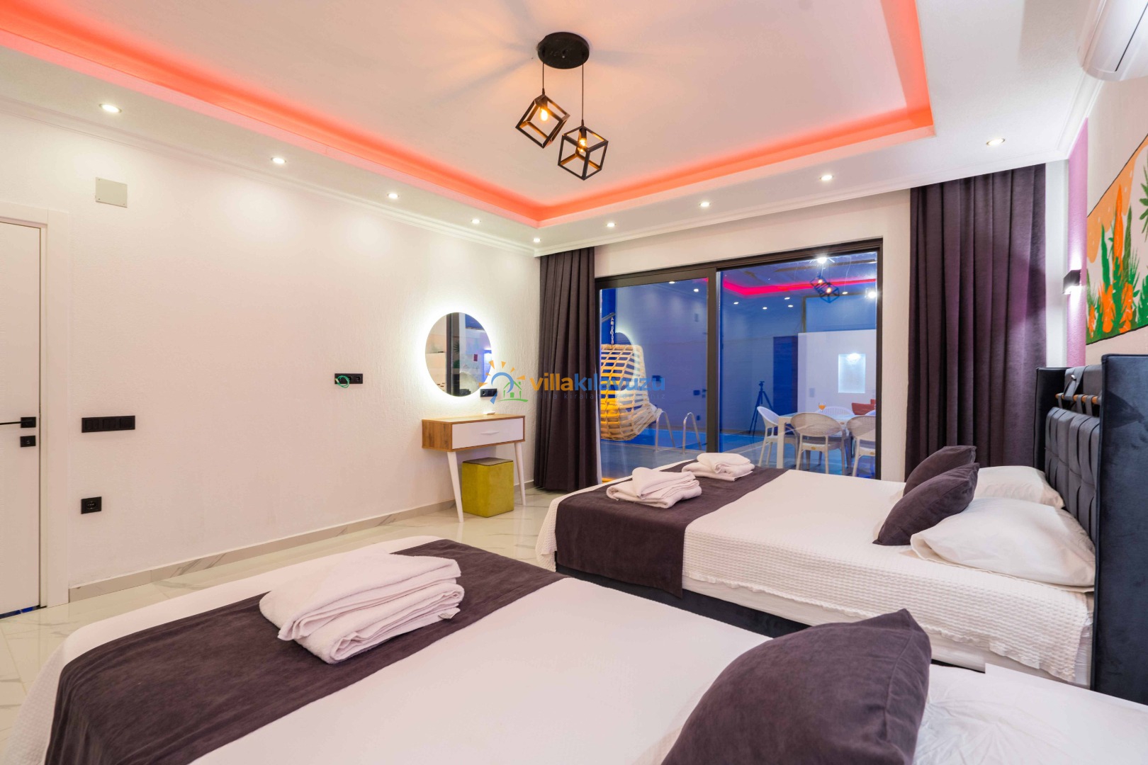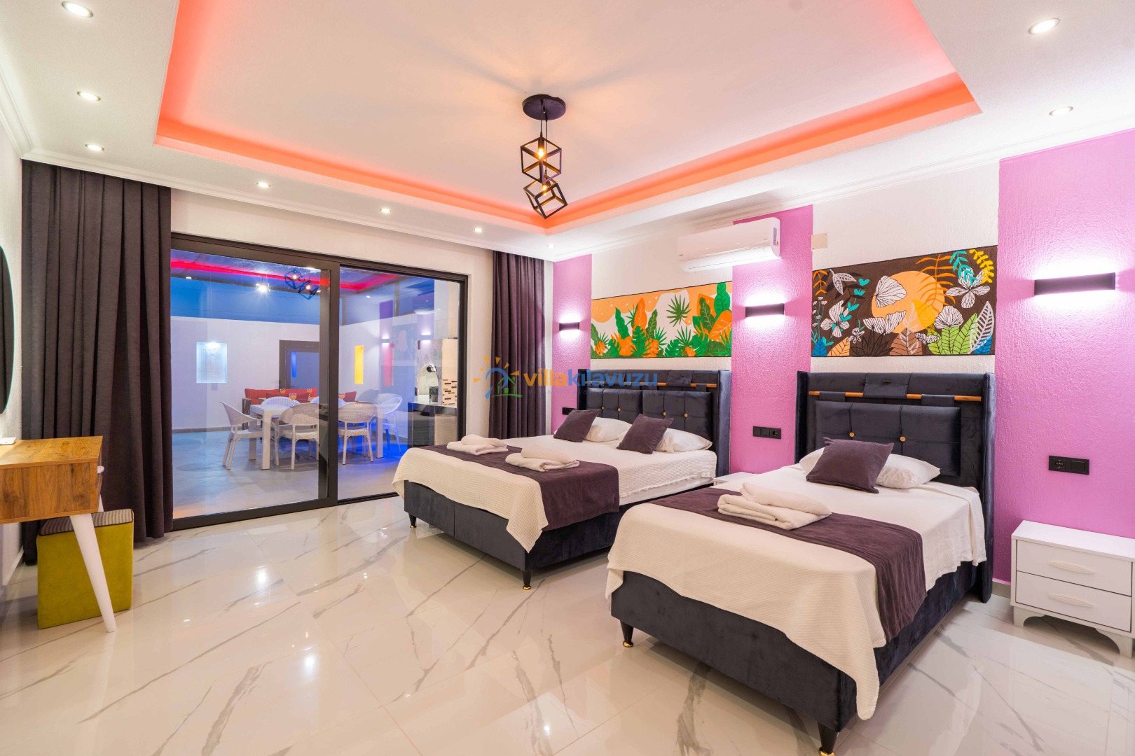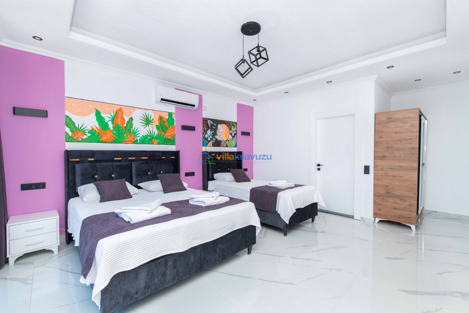 -Villamız 2 yatak odasına sahip olup 5 kişilik konaklama kapasitesine sahiptir.