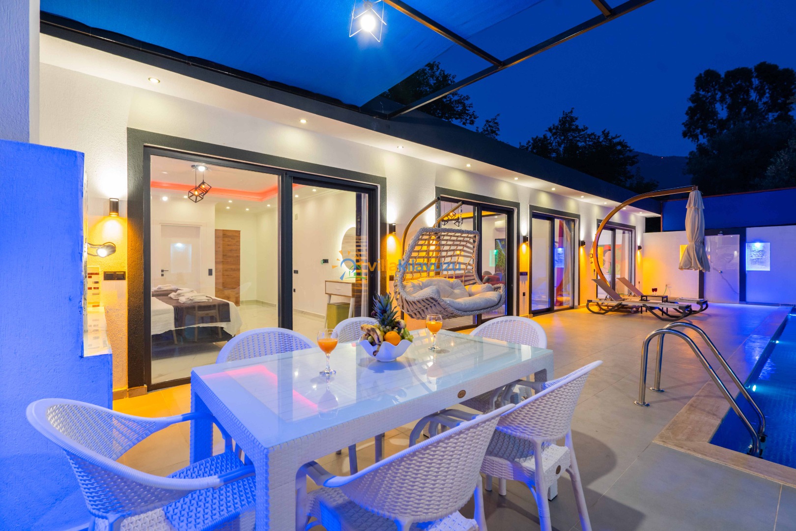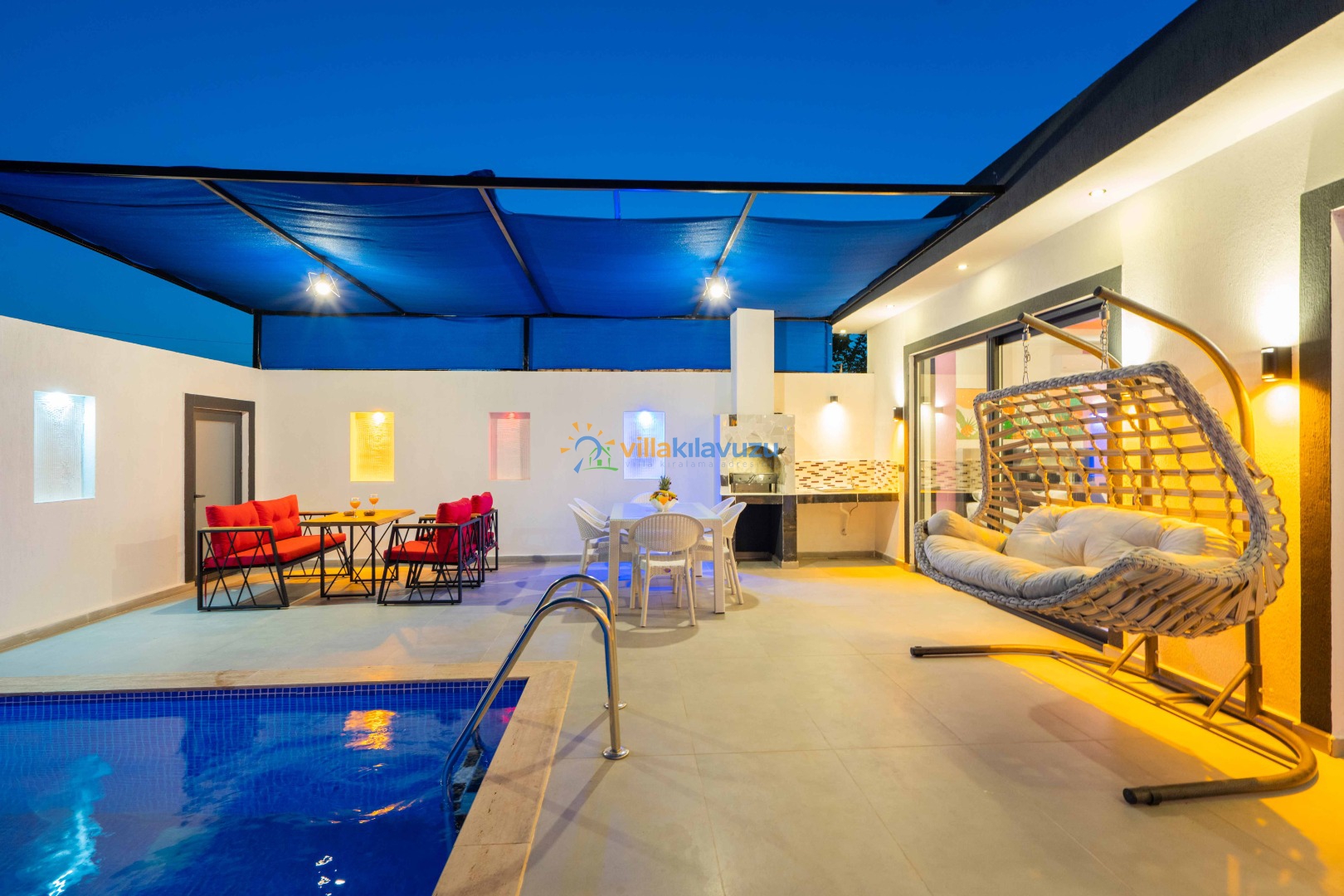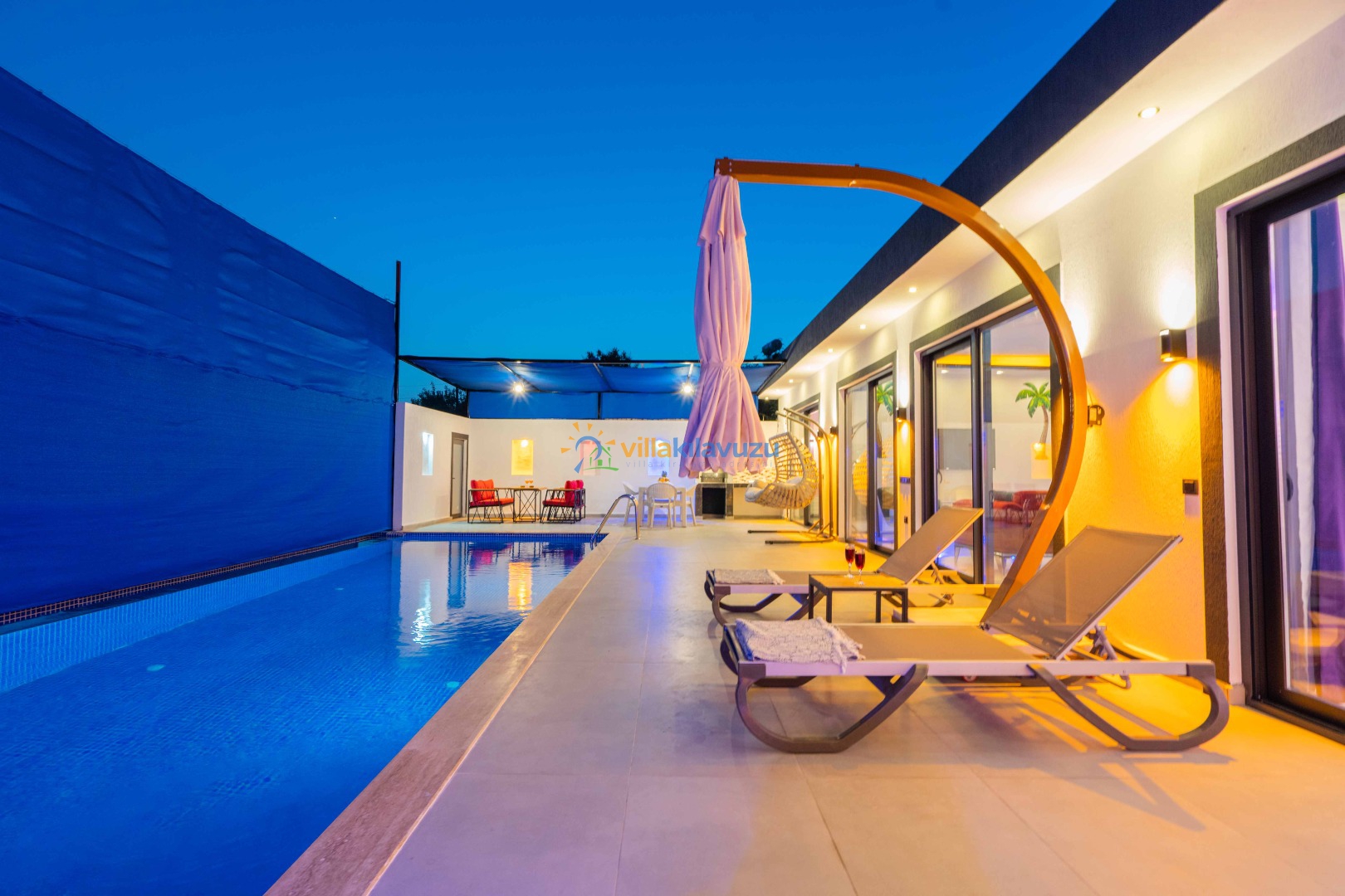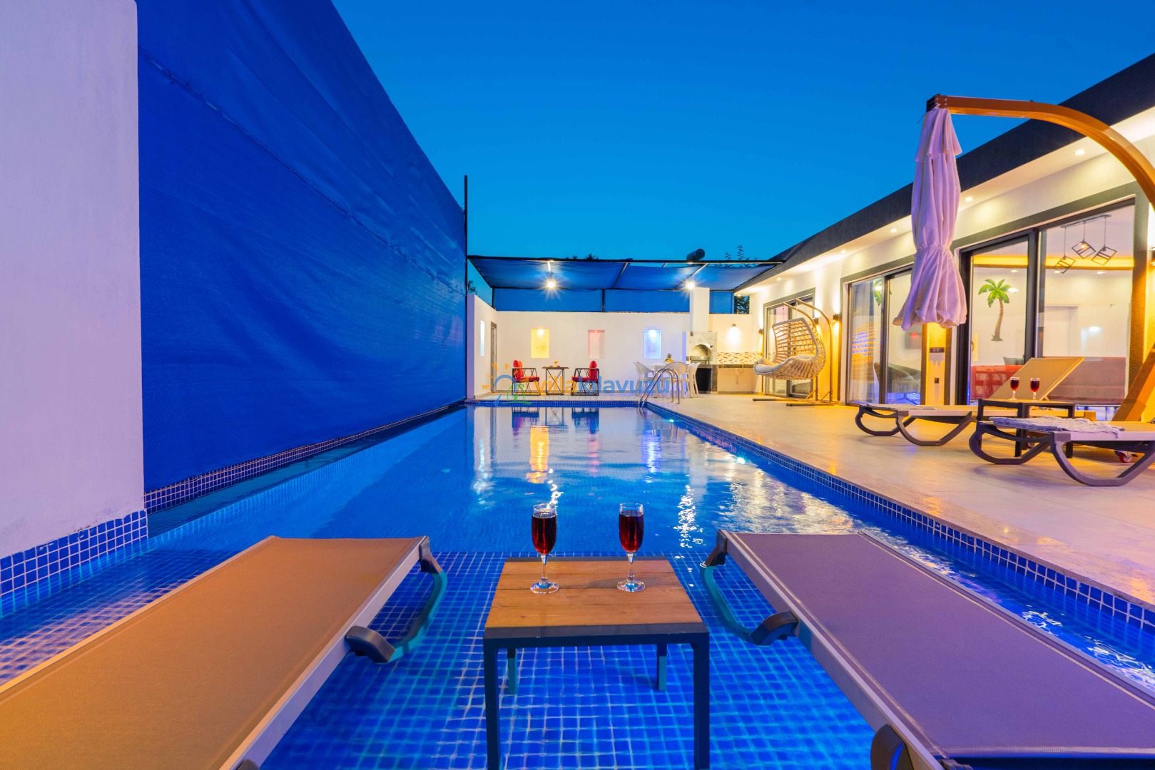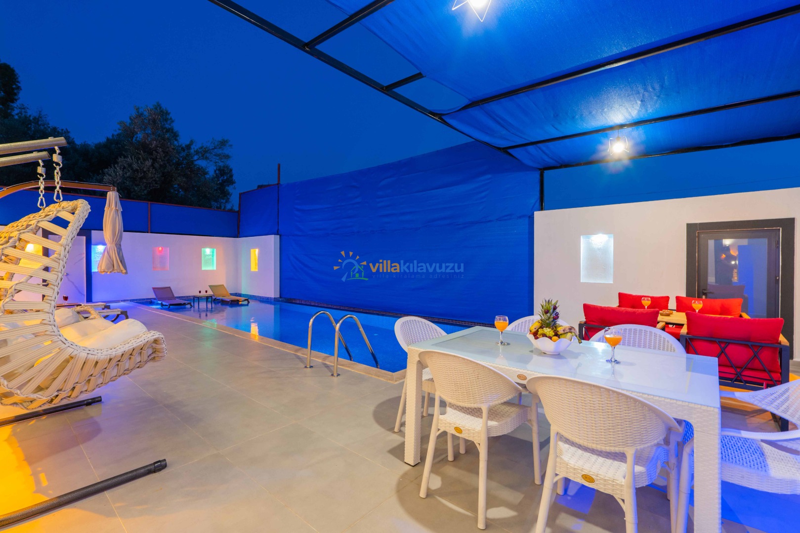 -Villamızın havuz terası korunaklıdır.