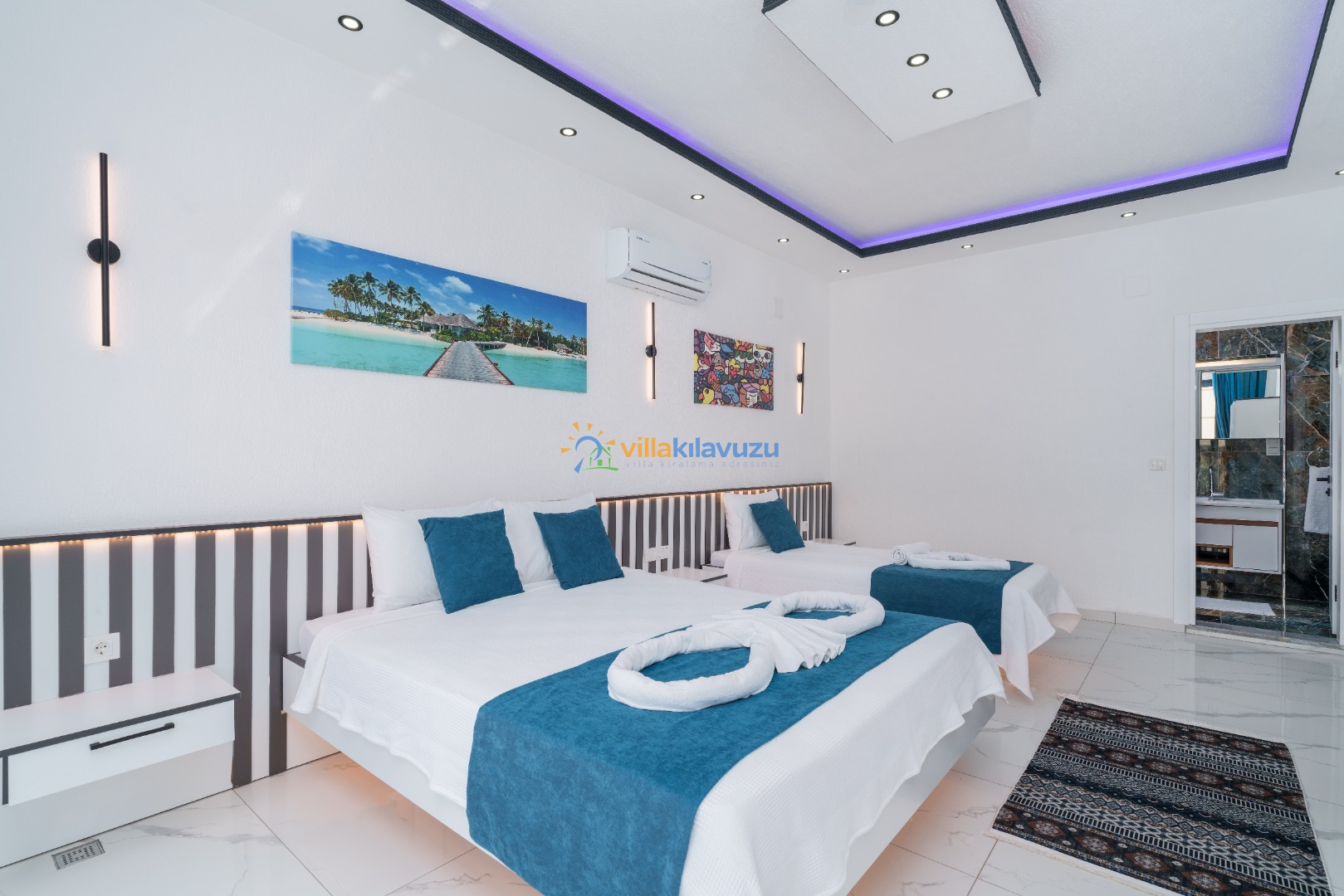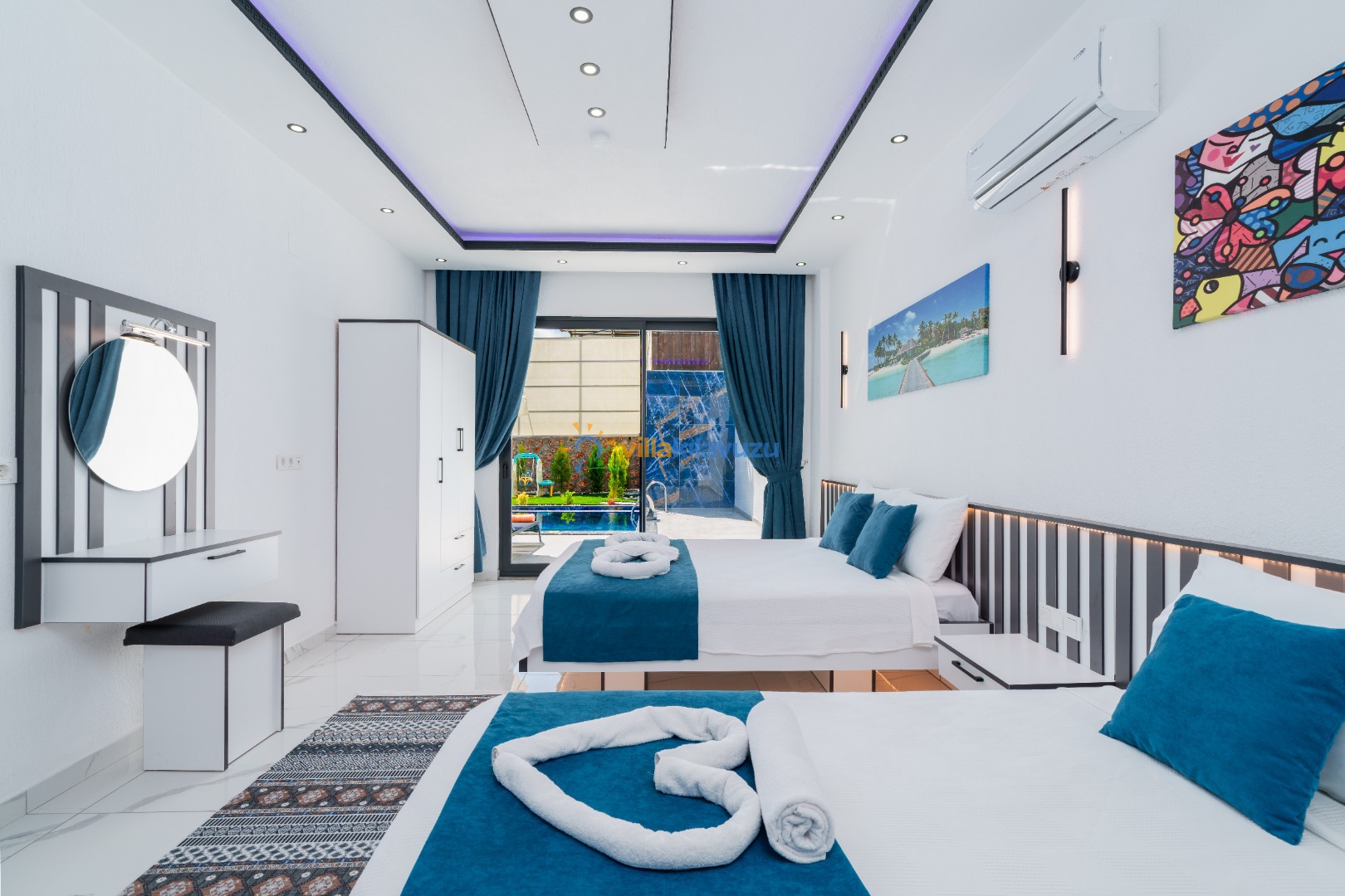 -Villamız 2 yatak odasına sahip olup 5 kişilik konaklama kapasitesine sahiptir.