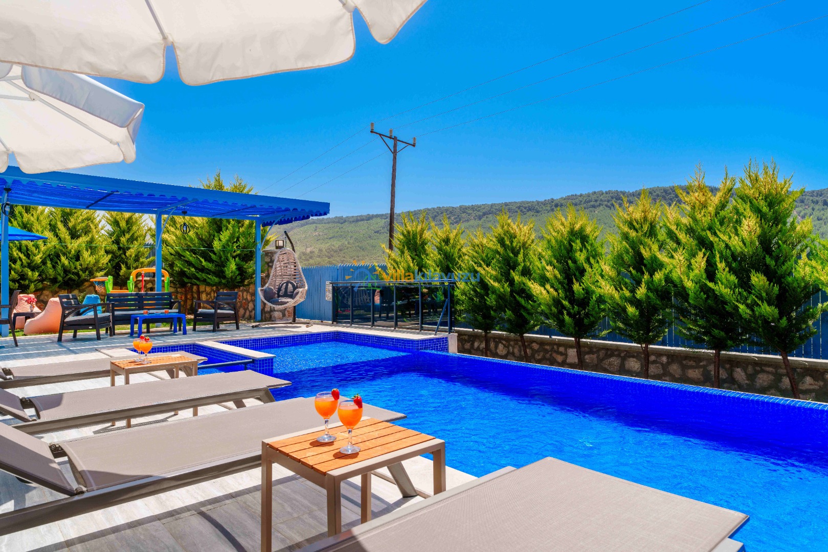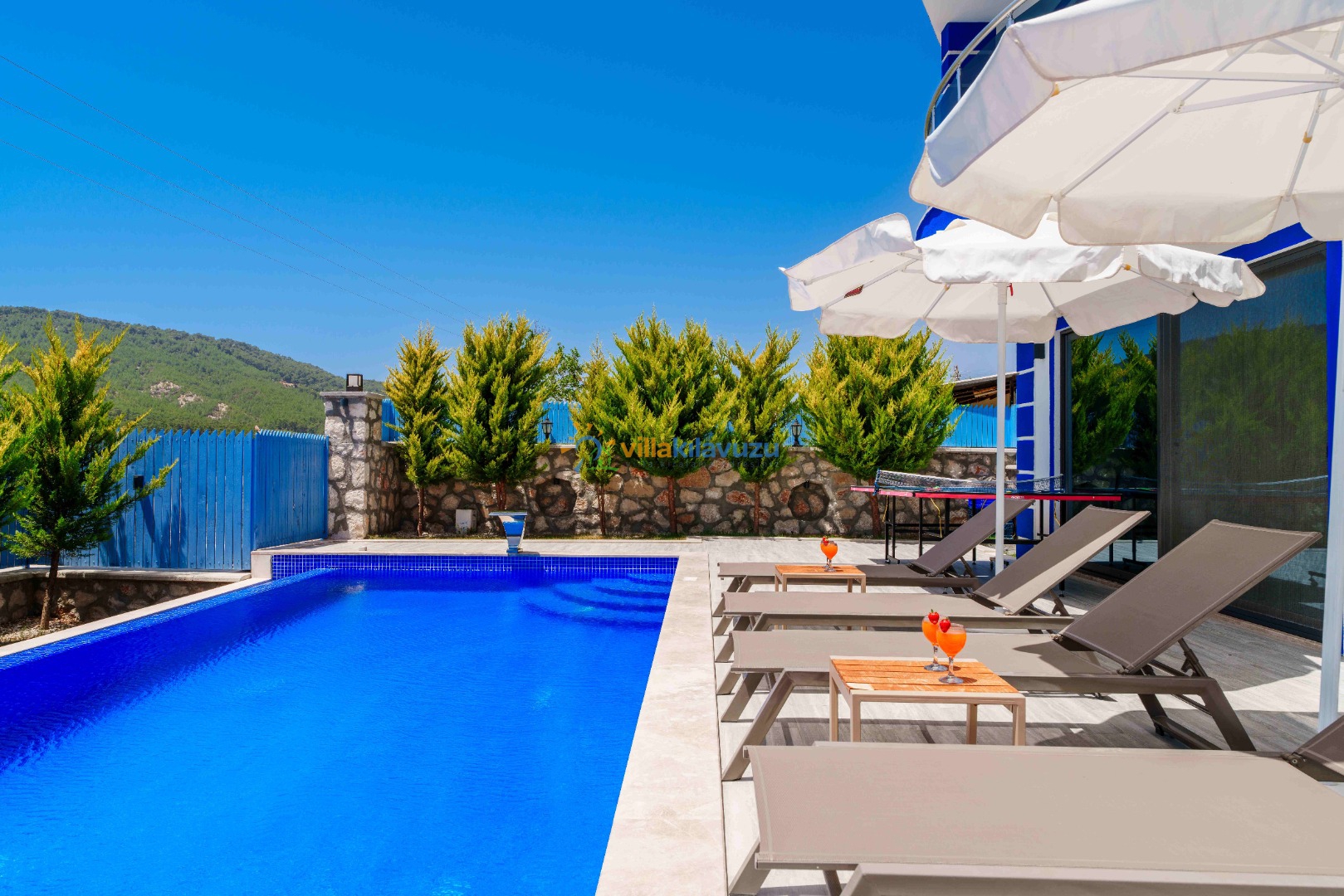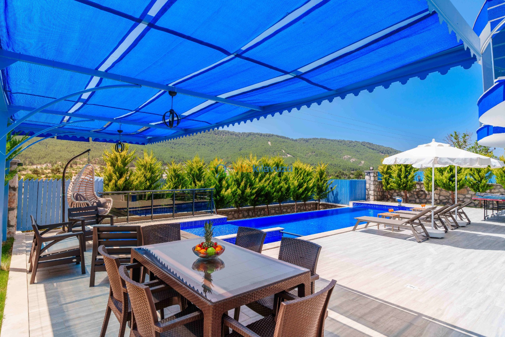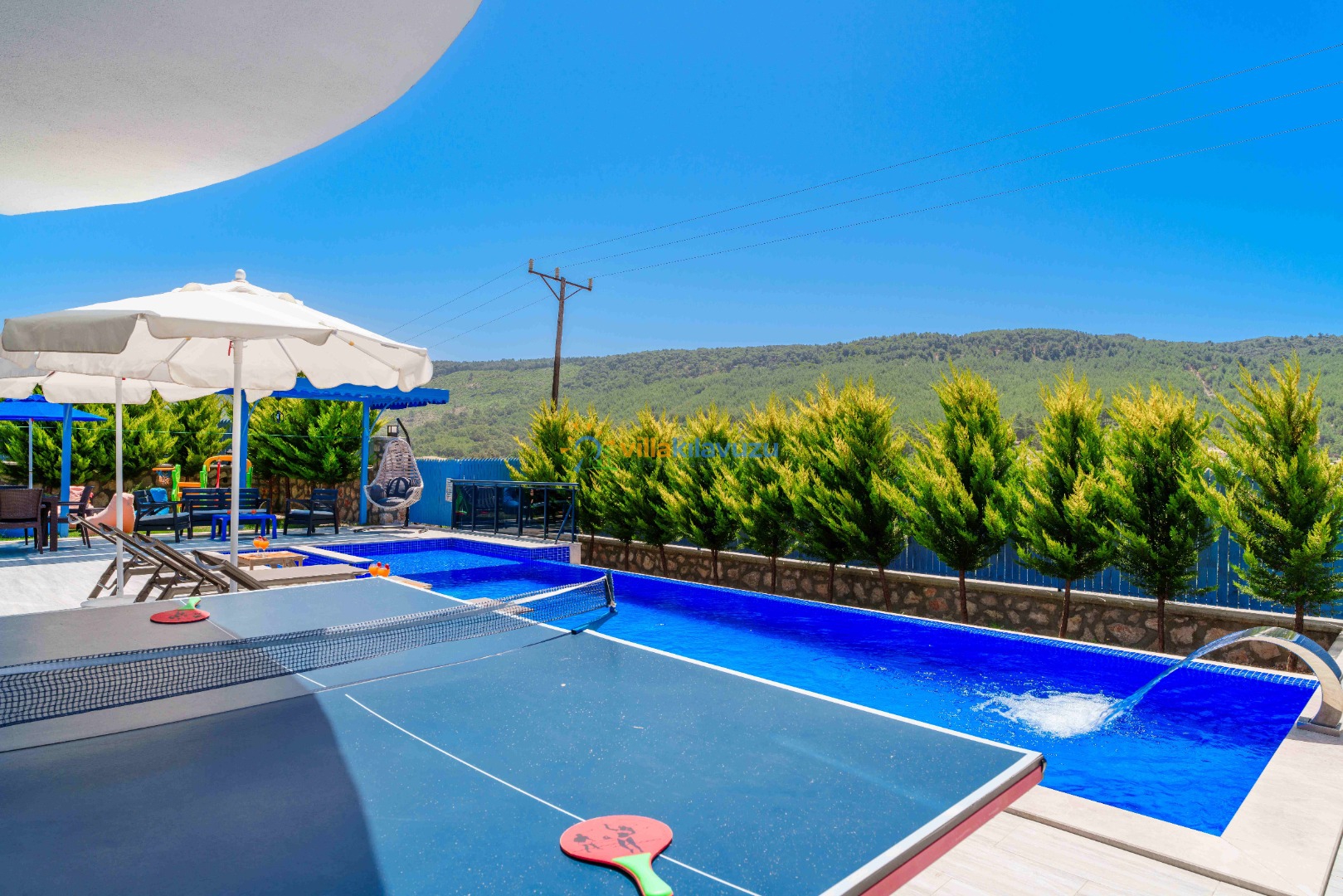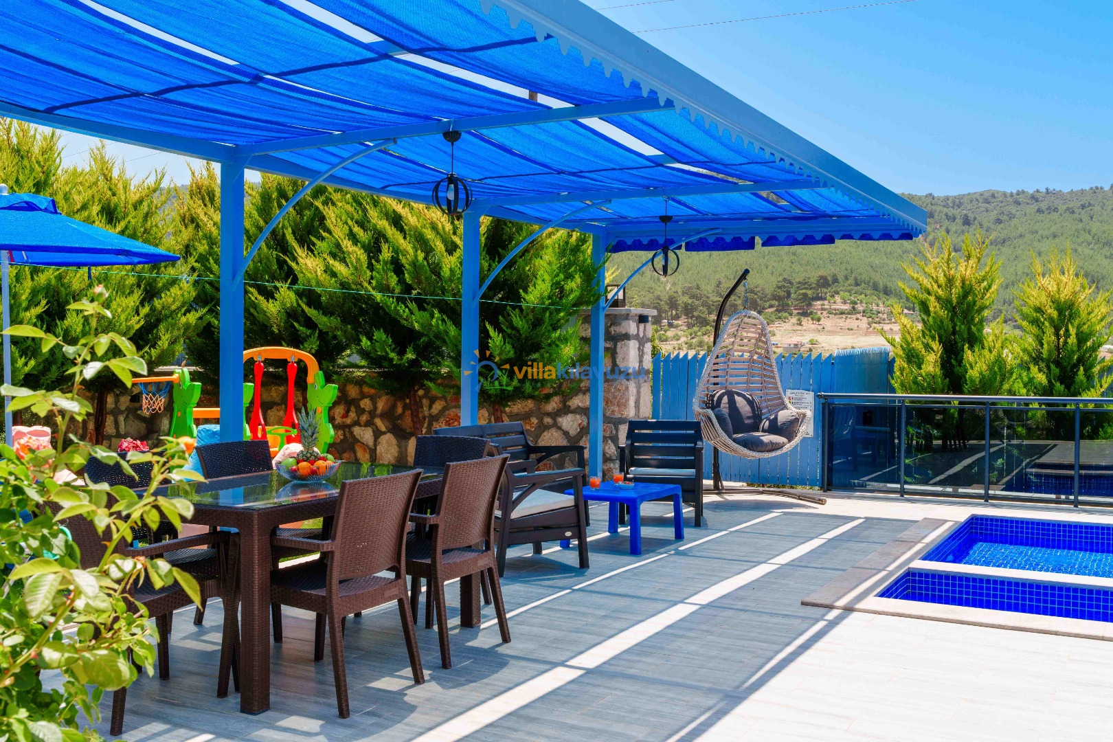 -Villamızın havuz terası korunaklıdır.