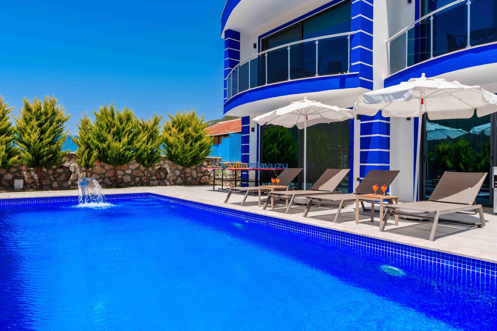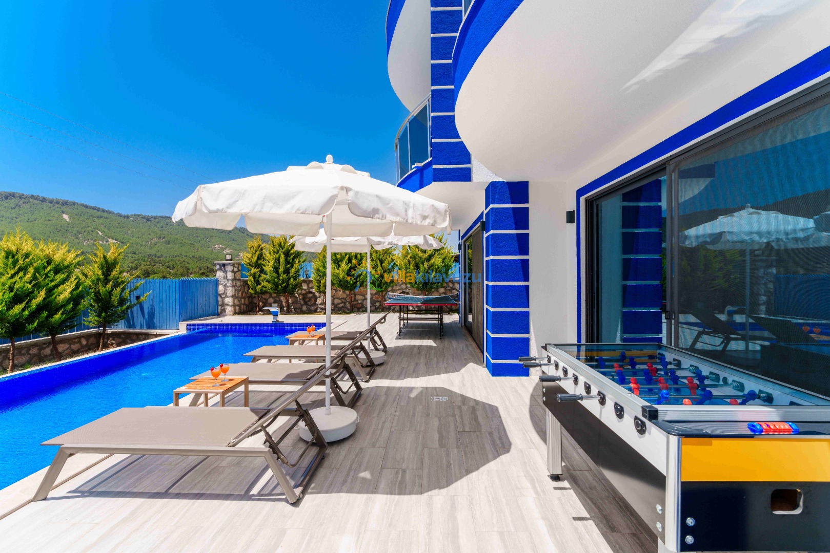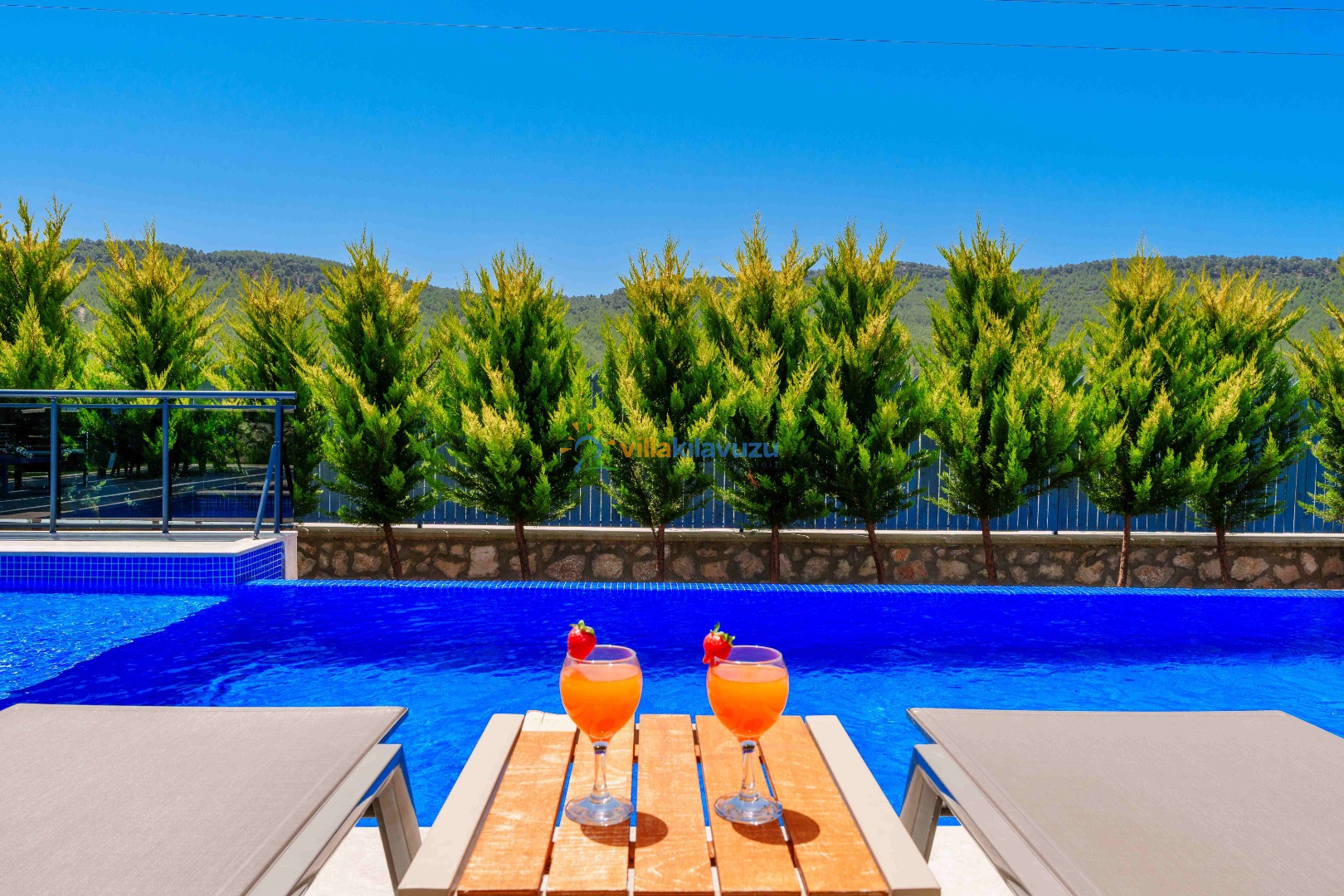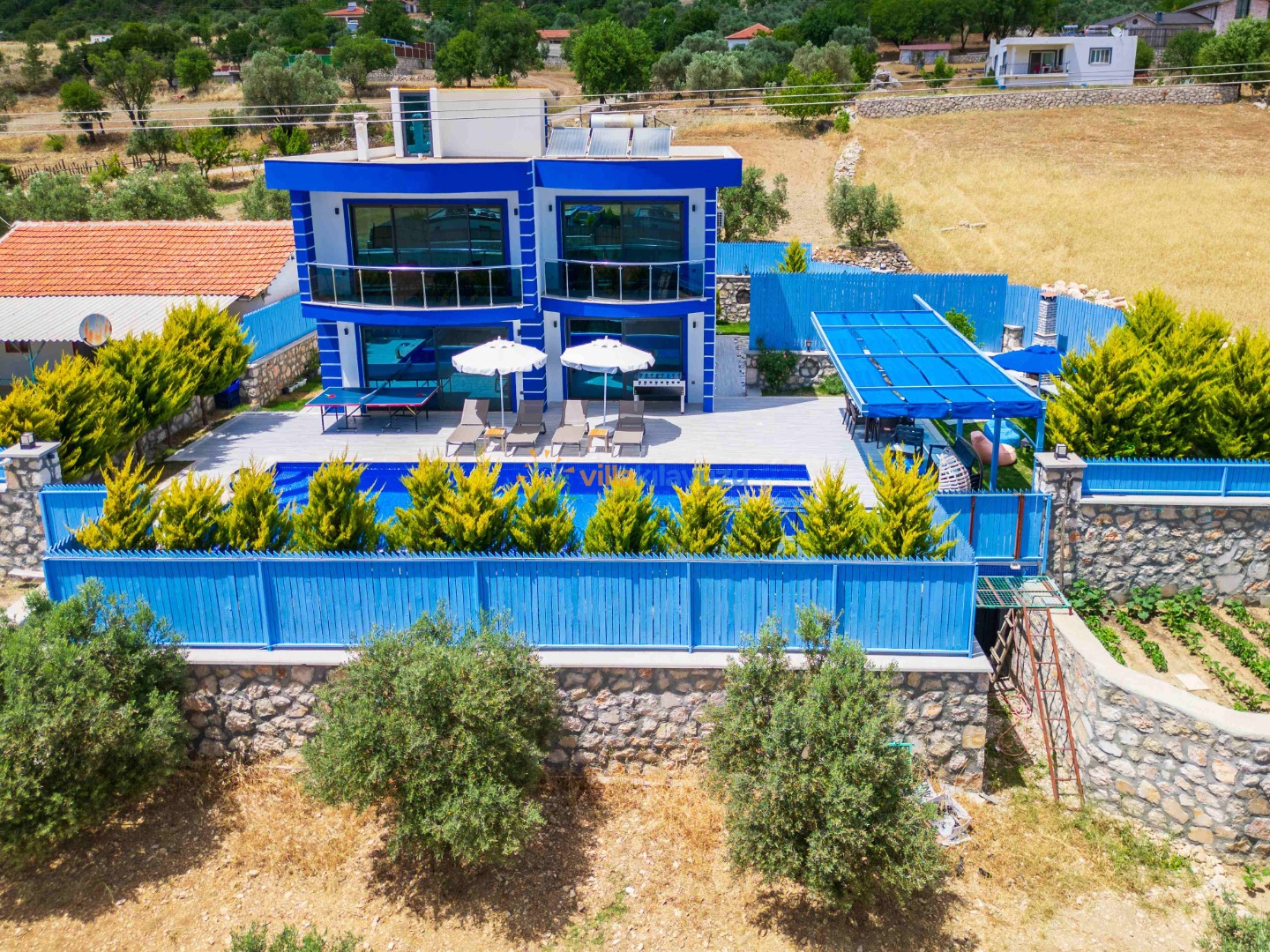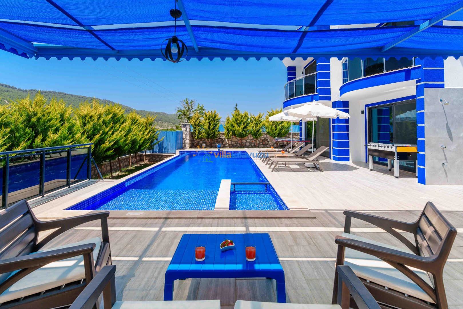 -Villamızın havuz terası korunaklıdır.