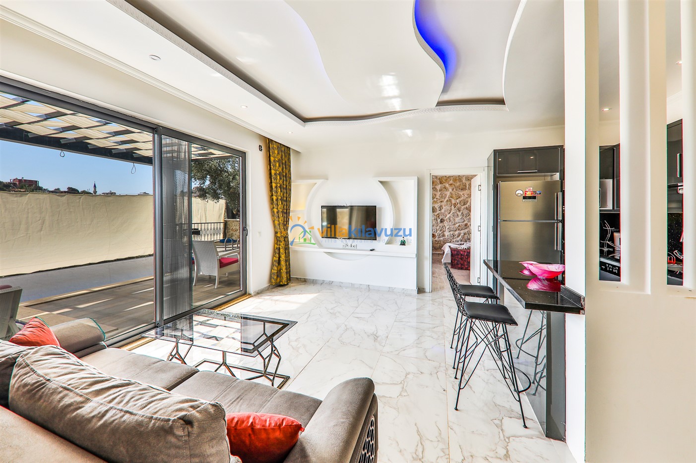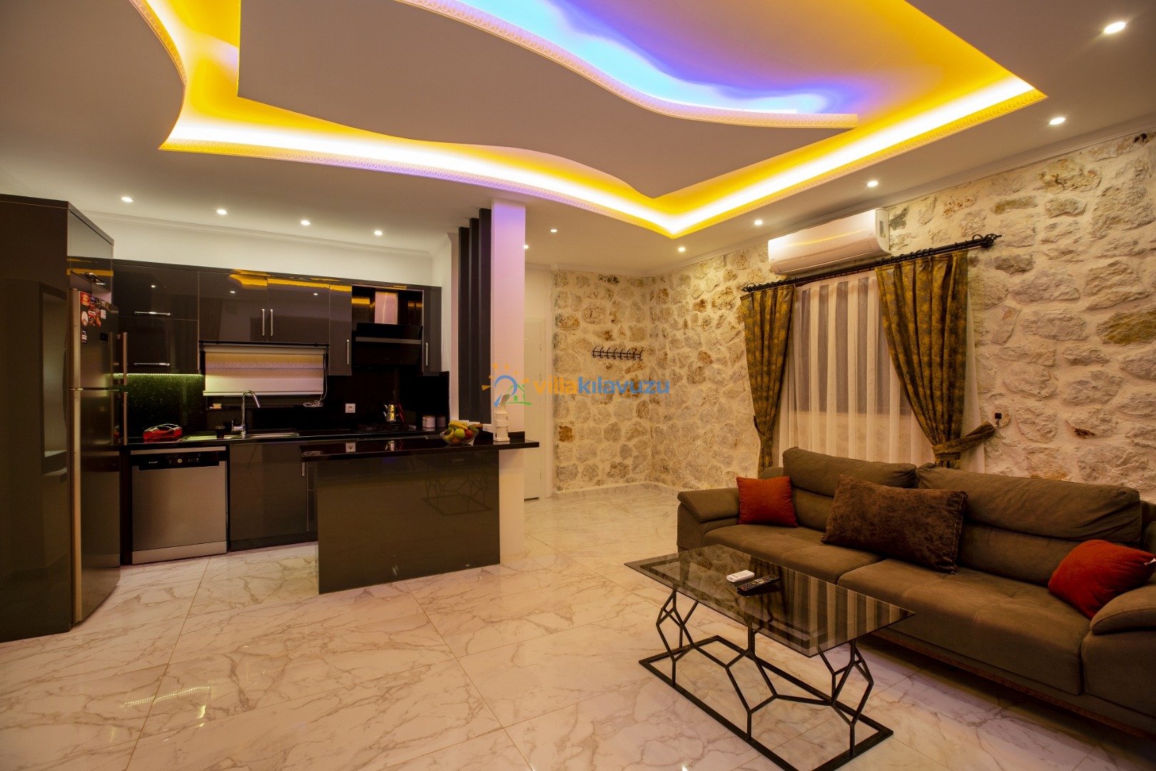 -Villamız 1 yatak odasına sahip olup 2 kişilik konaklama kapasitesine sahiptir.