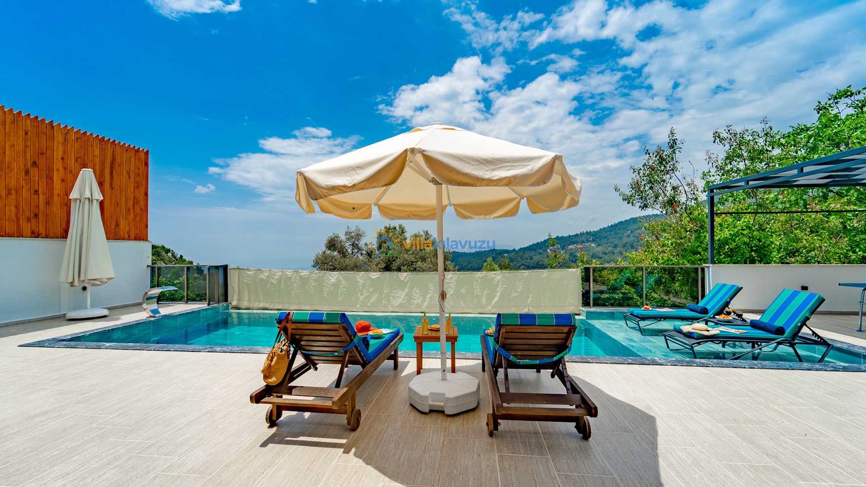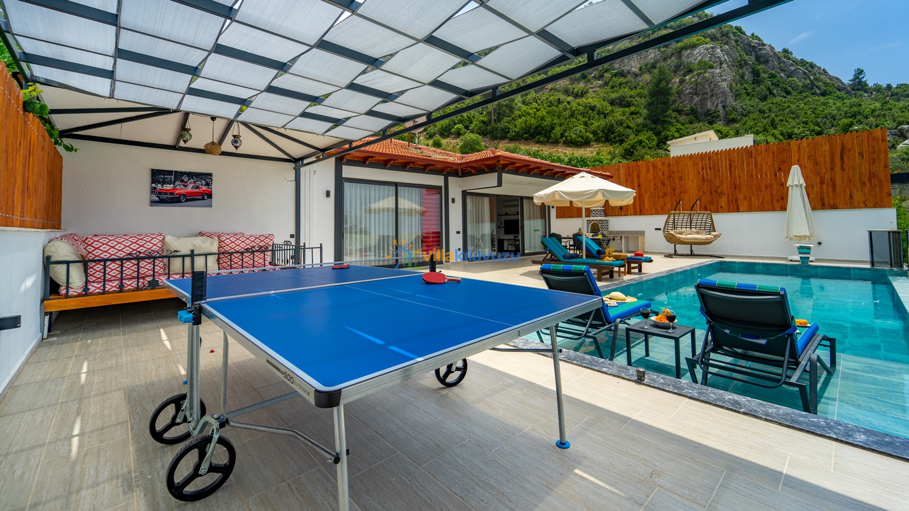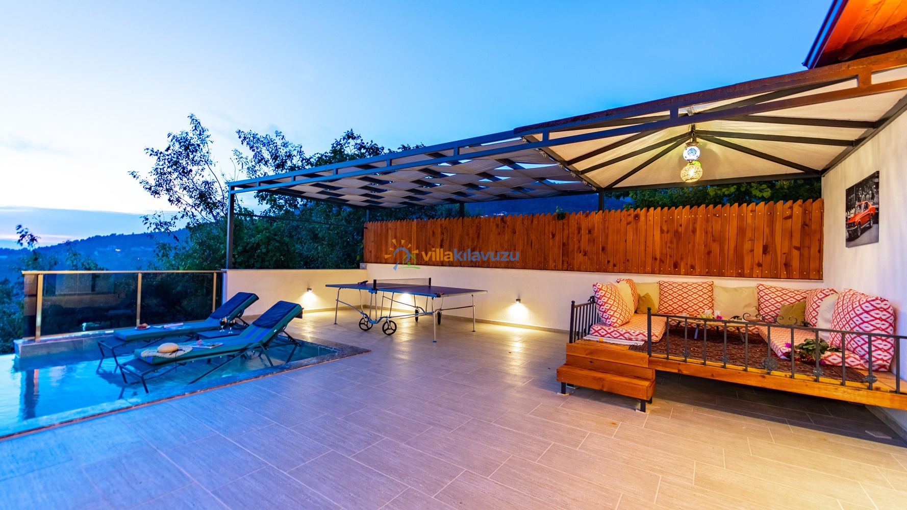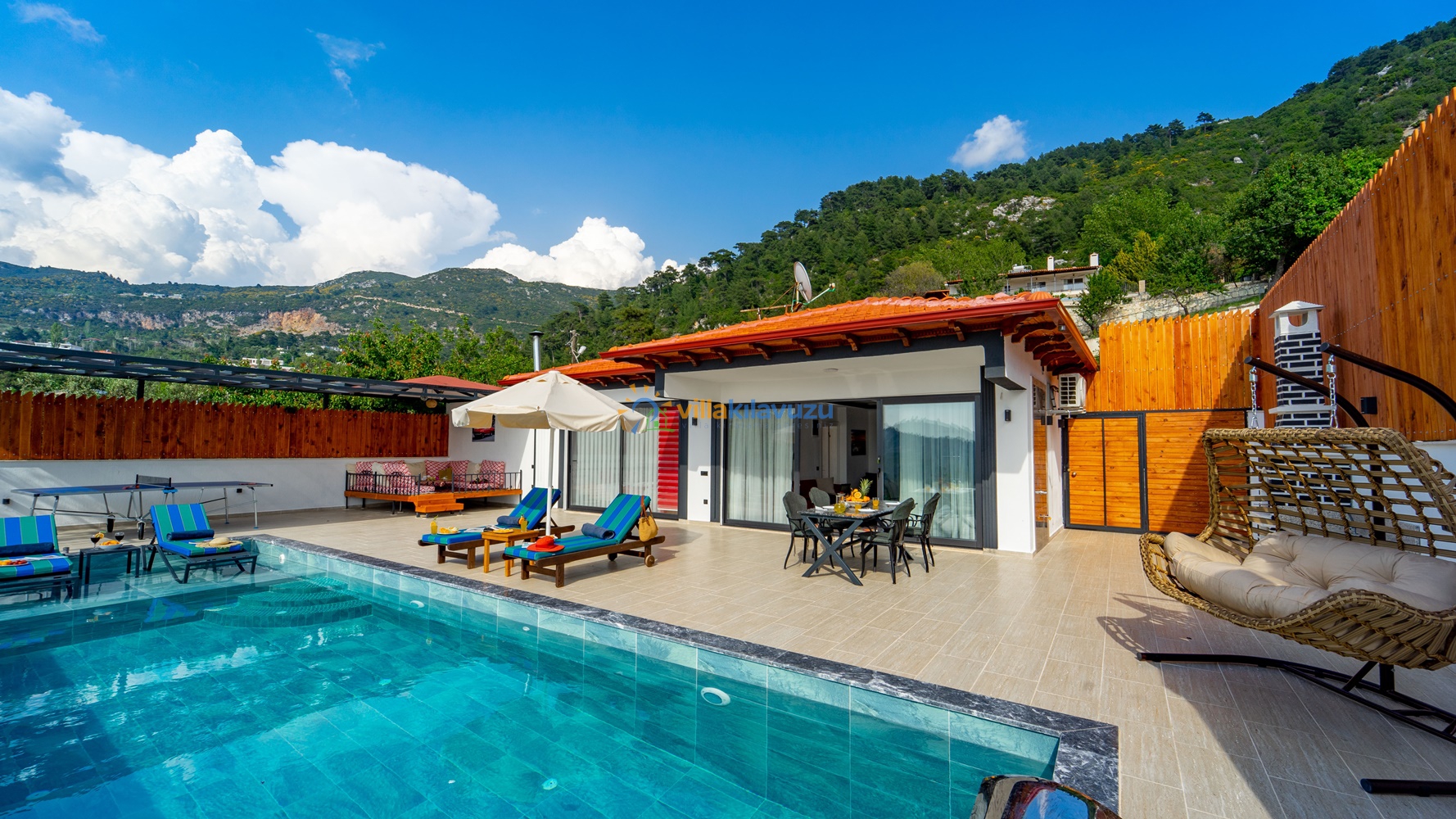 -Villamızın havuz terası korunaklıdır.