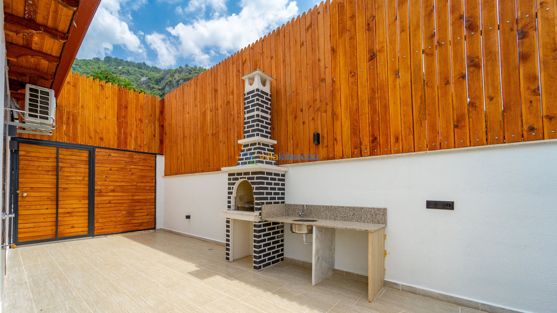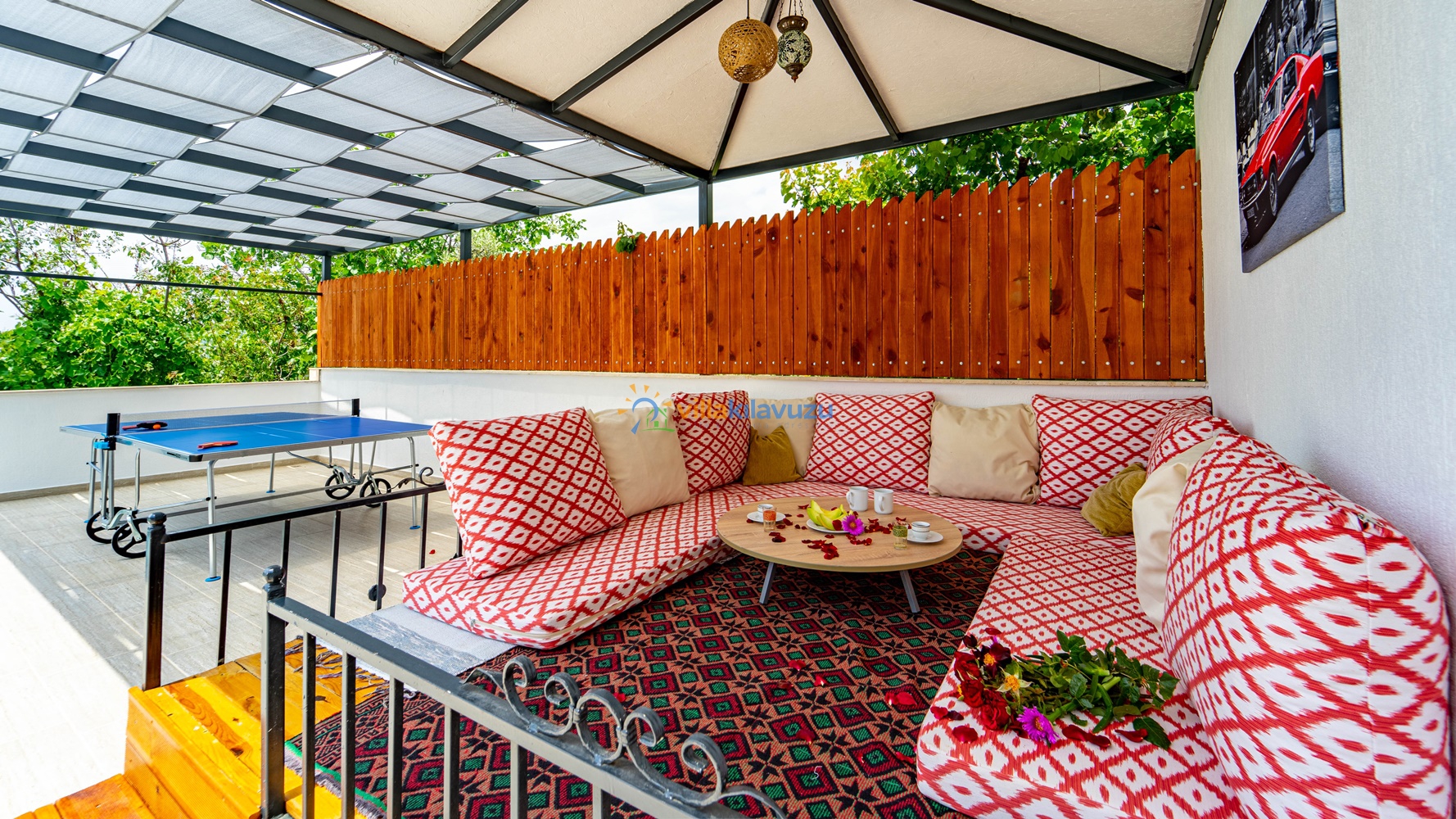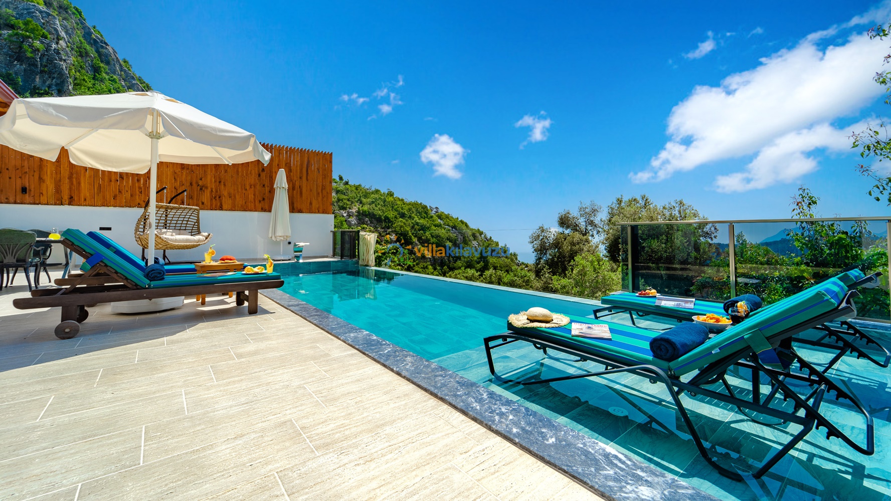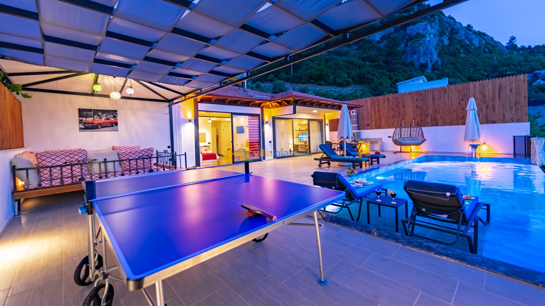 -Villamızın havuz terası korunaklıdır.