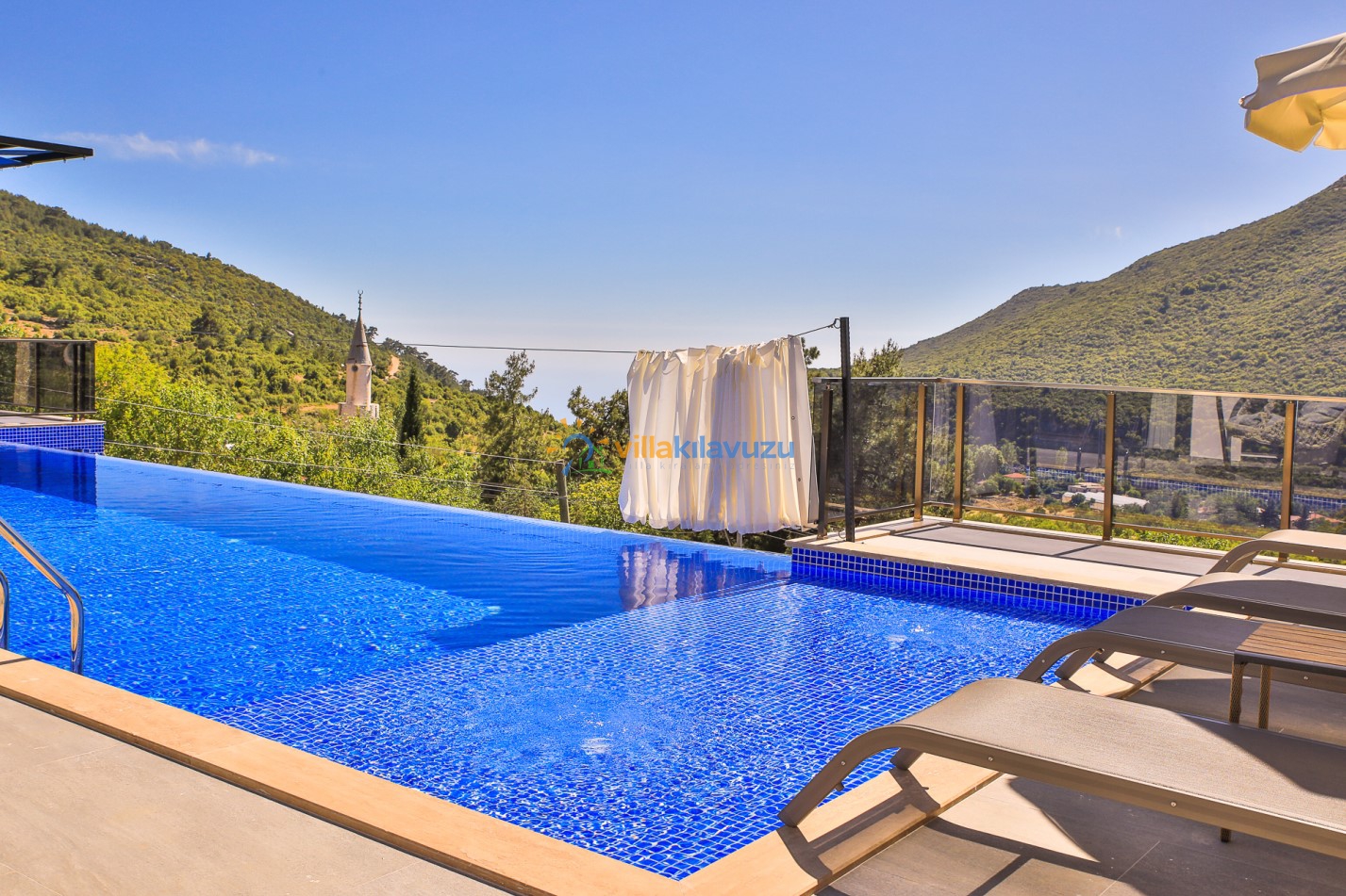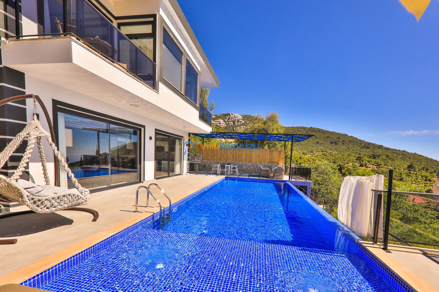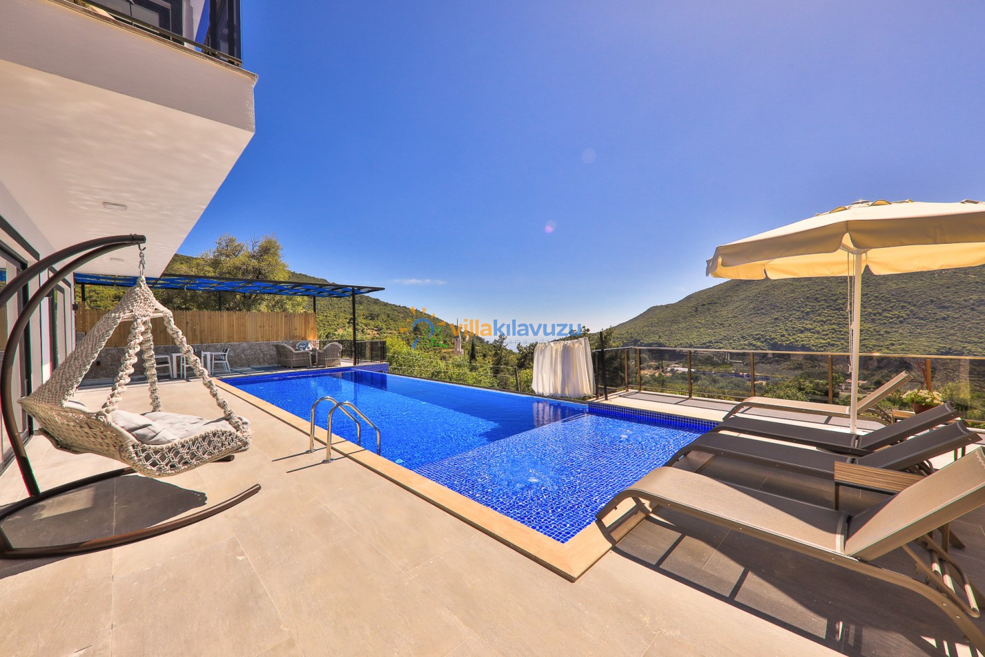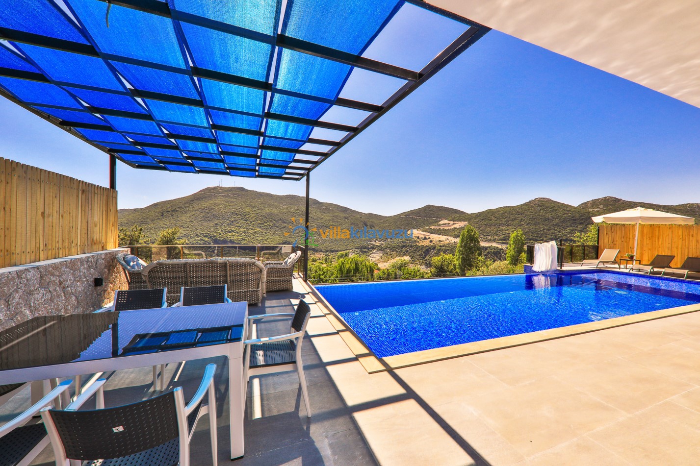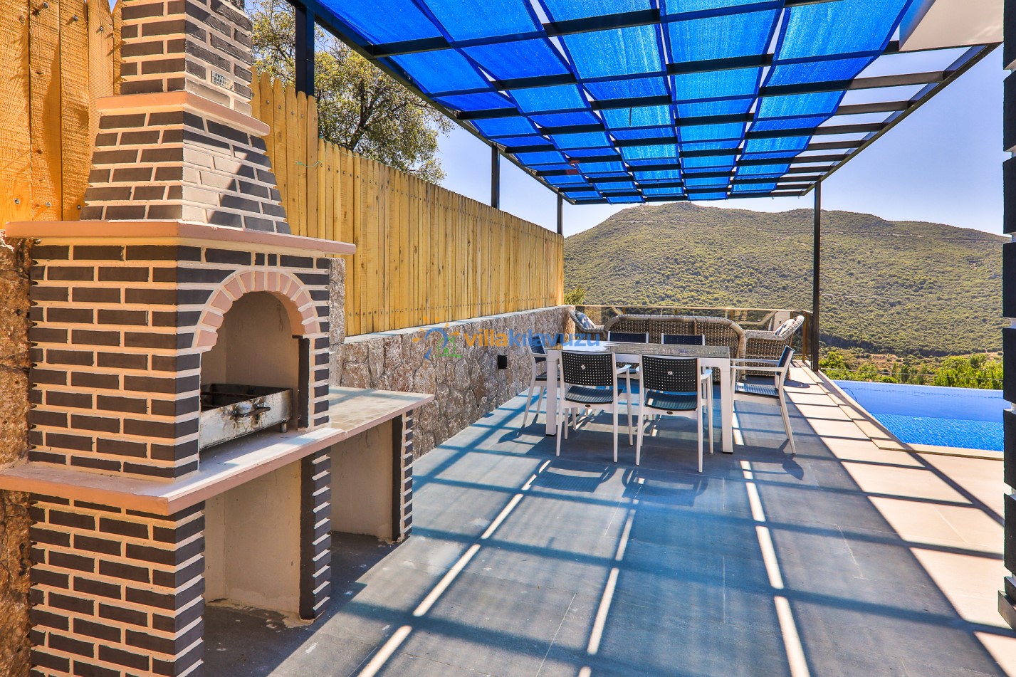 -Villamızın havuz terası korunaklıdır.