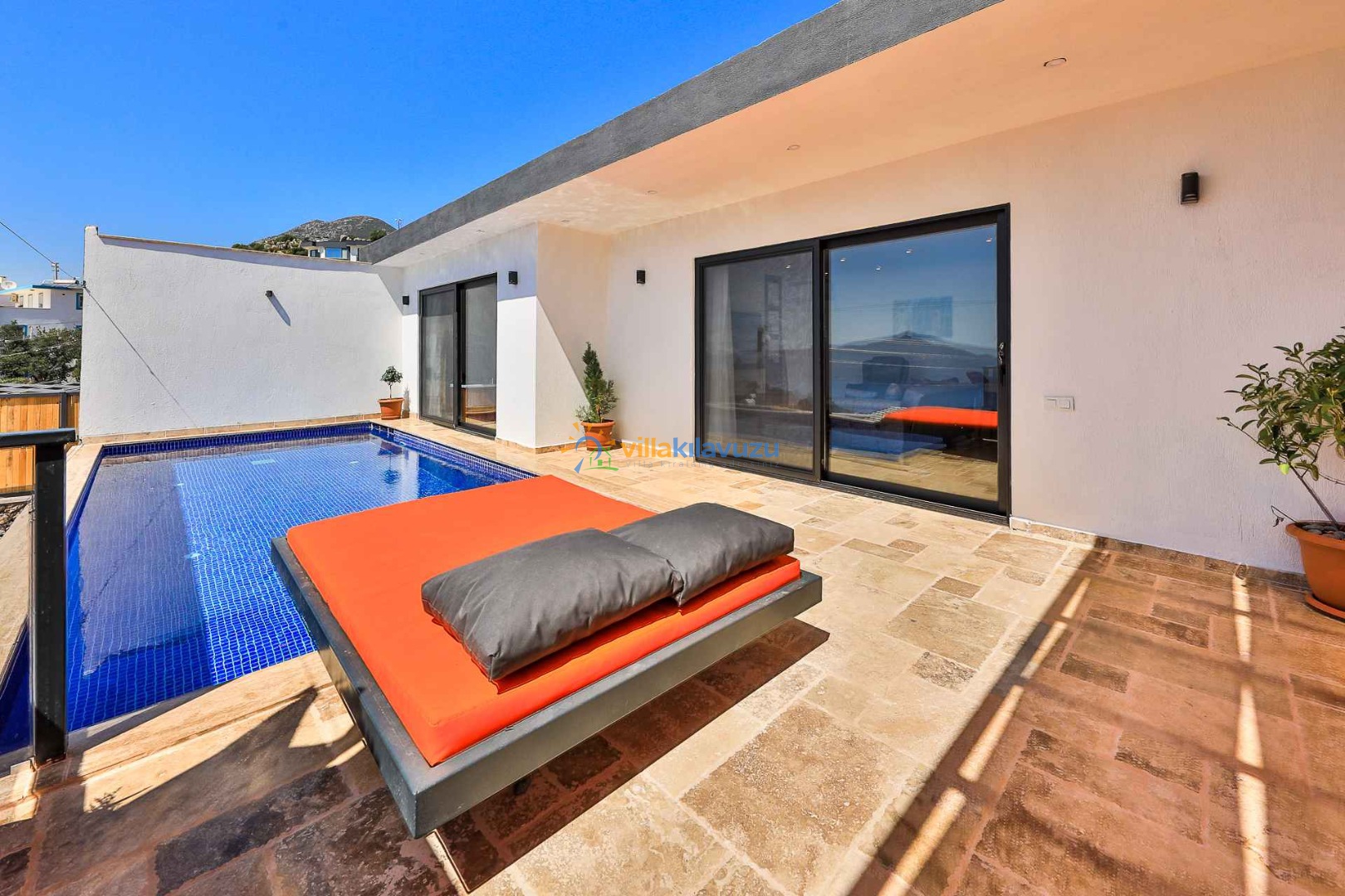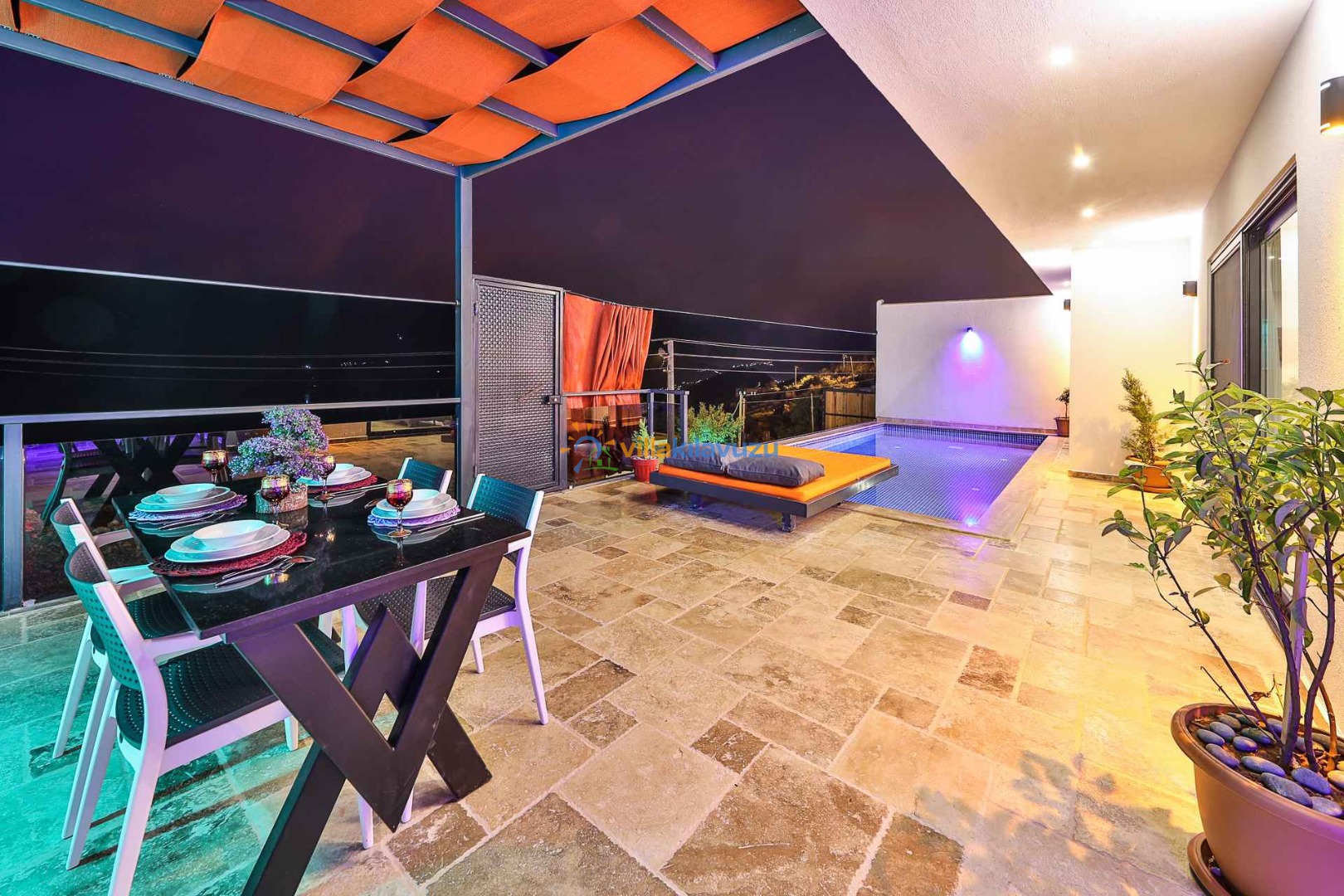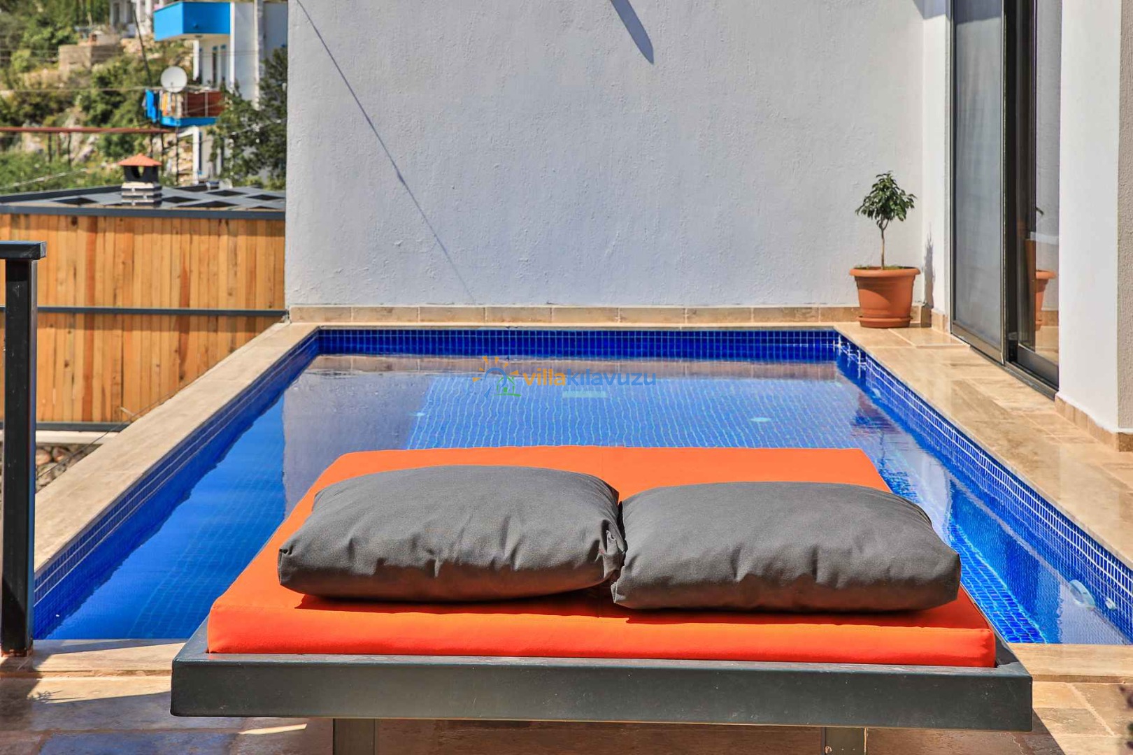 -Villamızın havuz terası korunaklıdır.