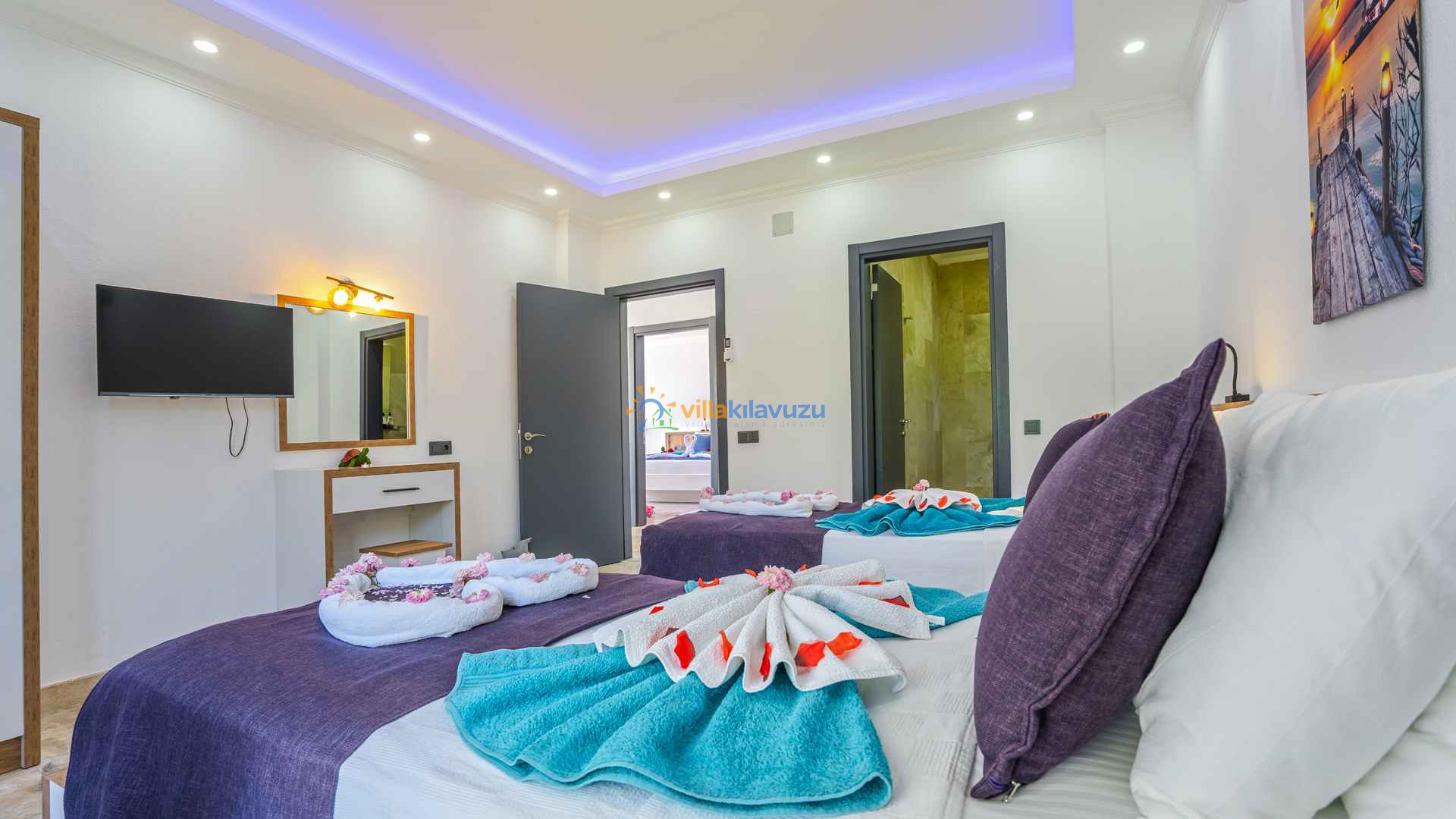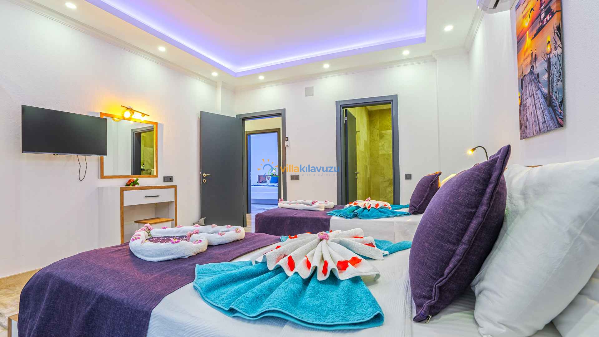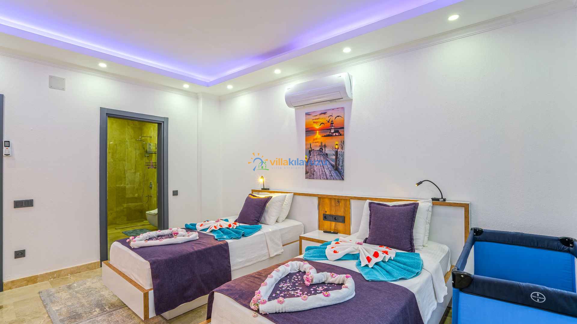 -Villamız 2 yatak odasına sahip olup 4 kişilik konaklama kapasitesine sahiptir.