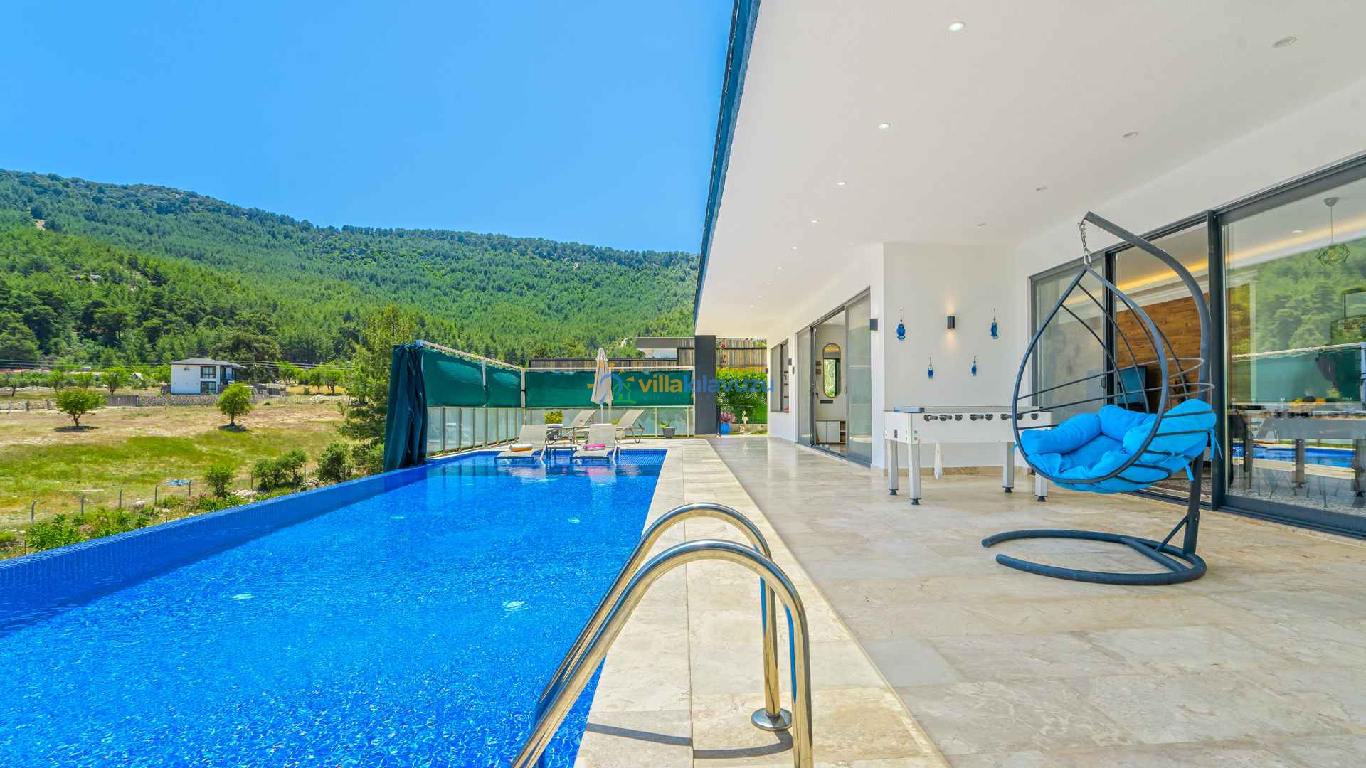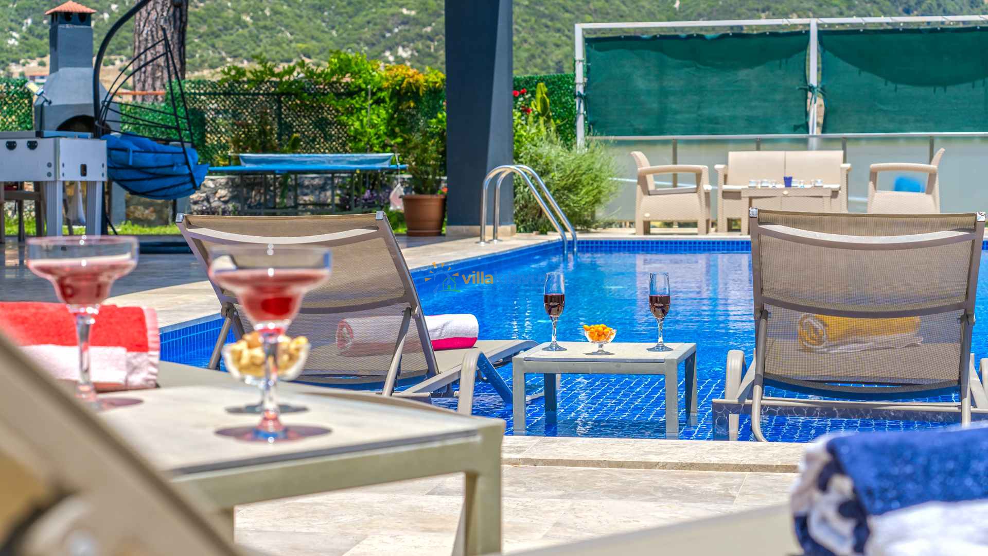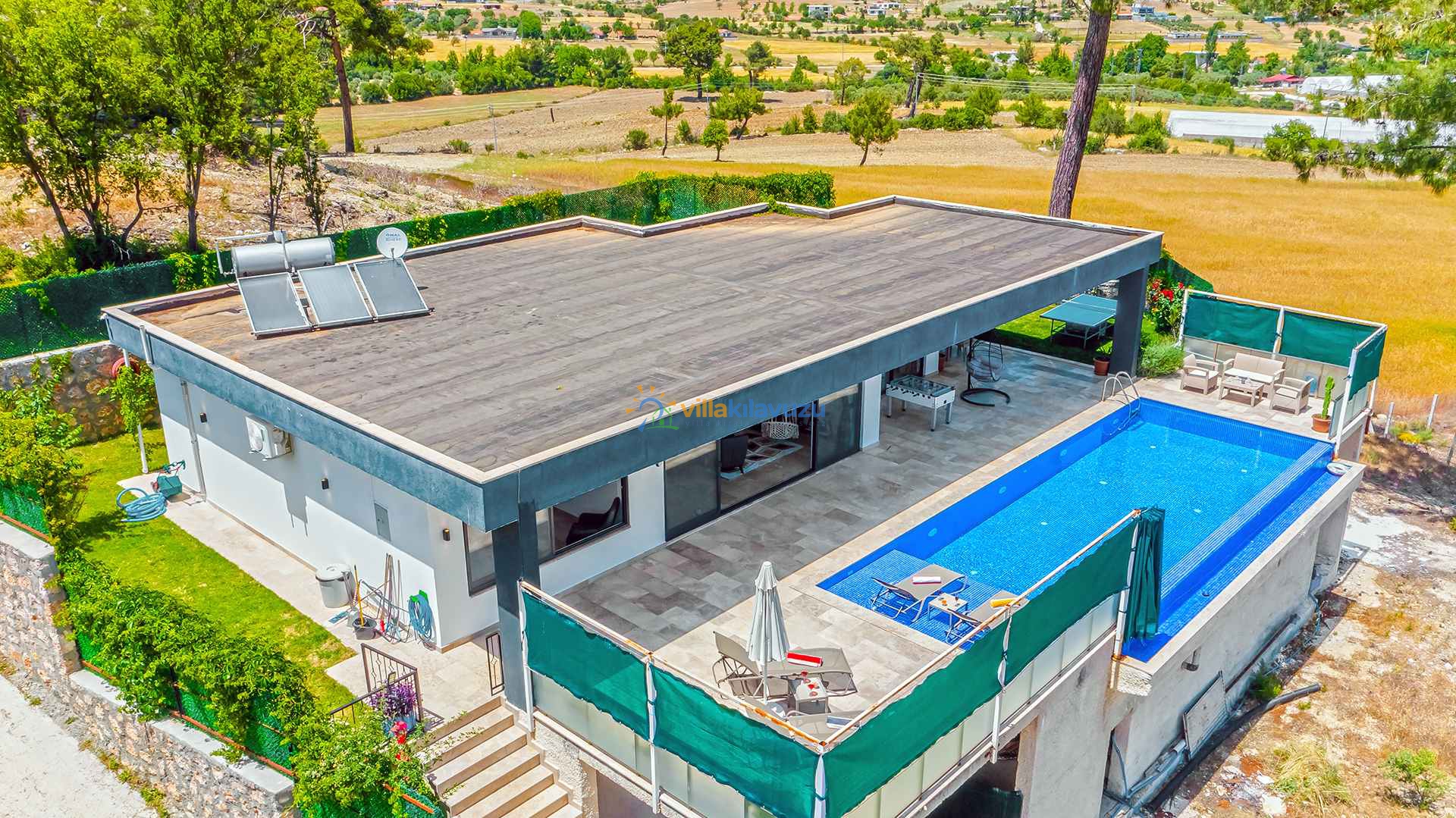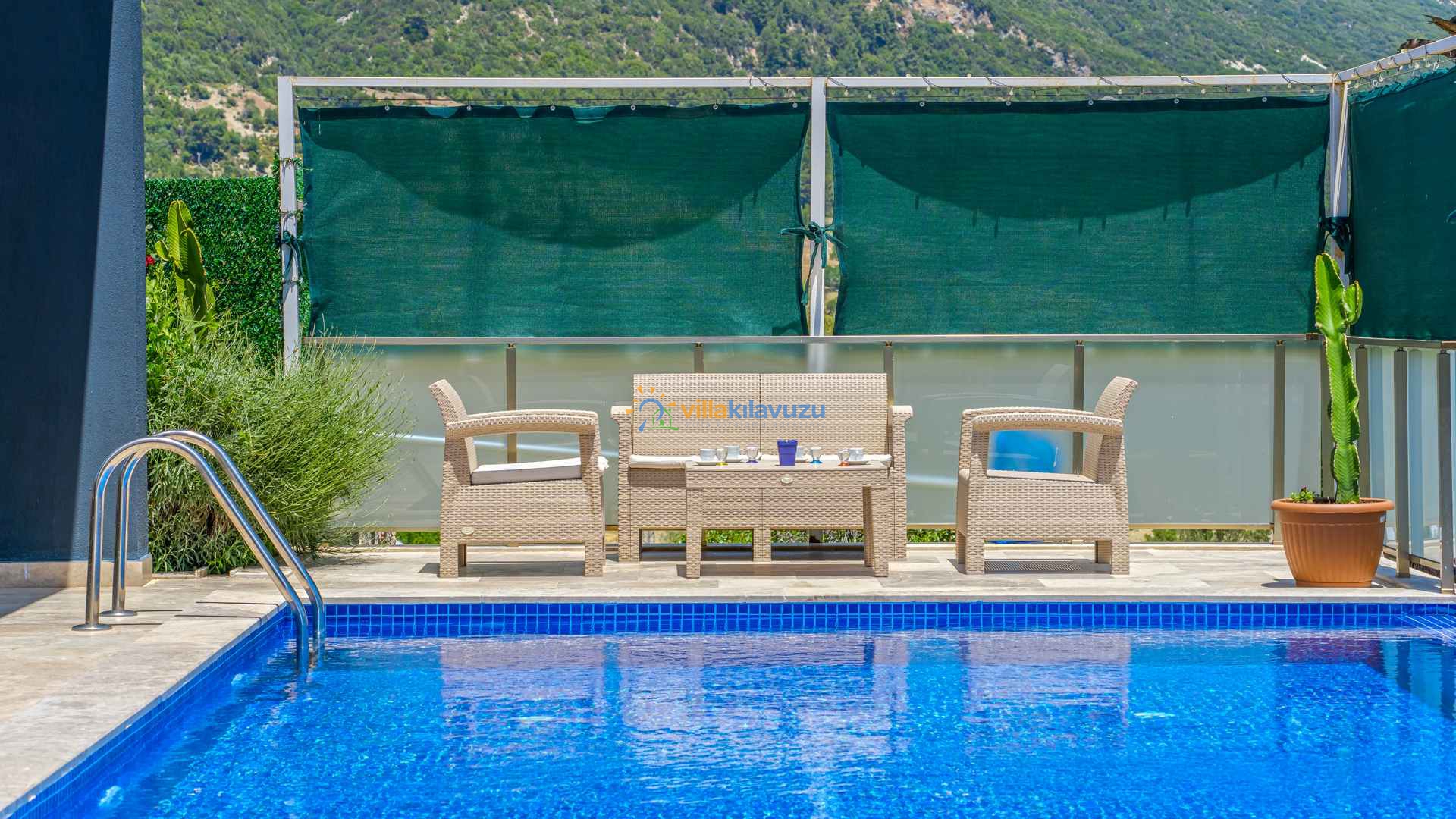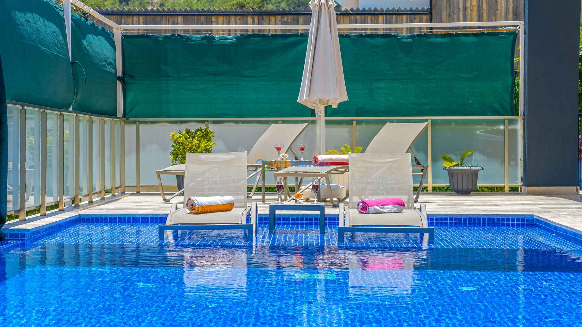 -Villamızın havuz terası korunaklıdır.