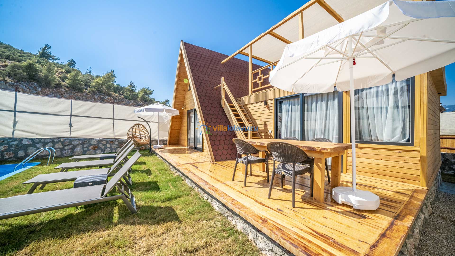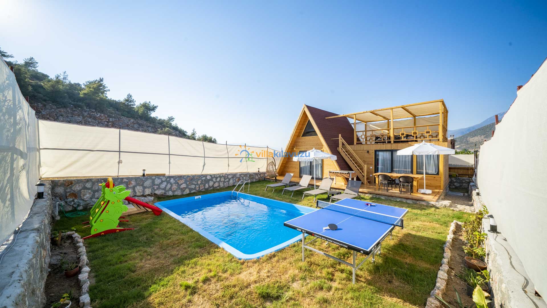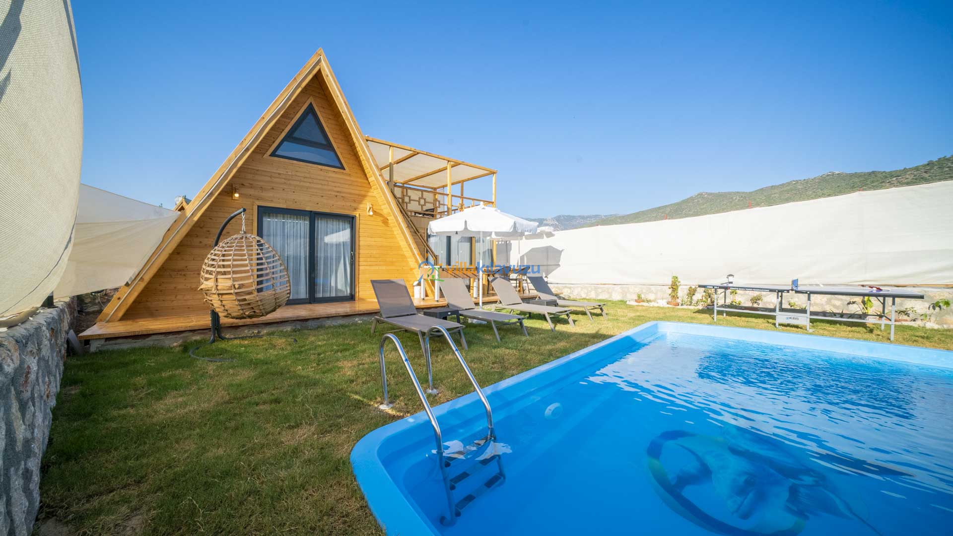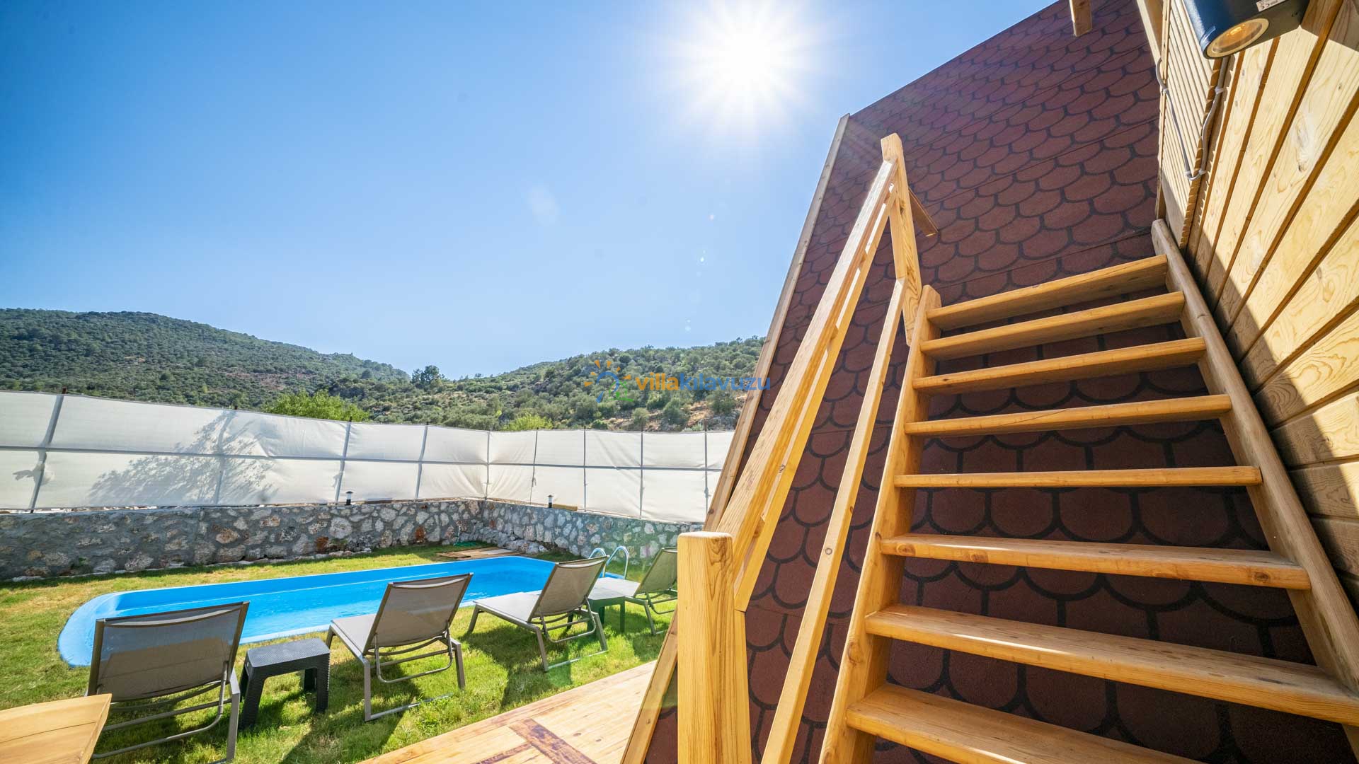 -Villamızın havuz terası korunaklıdır.