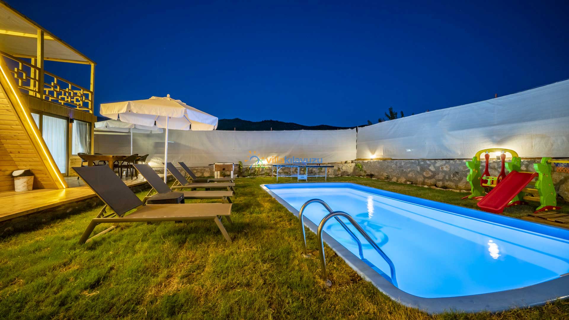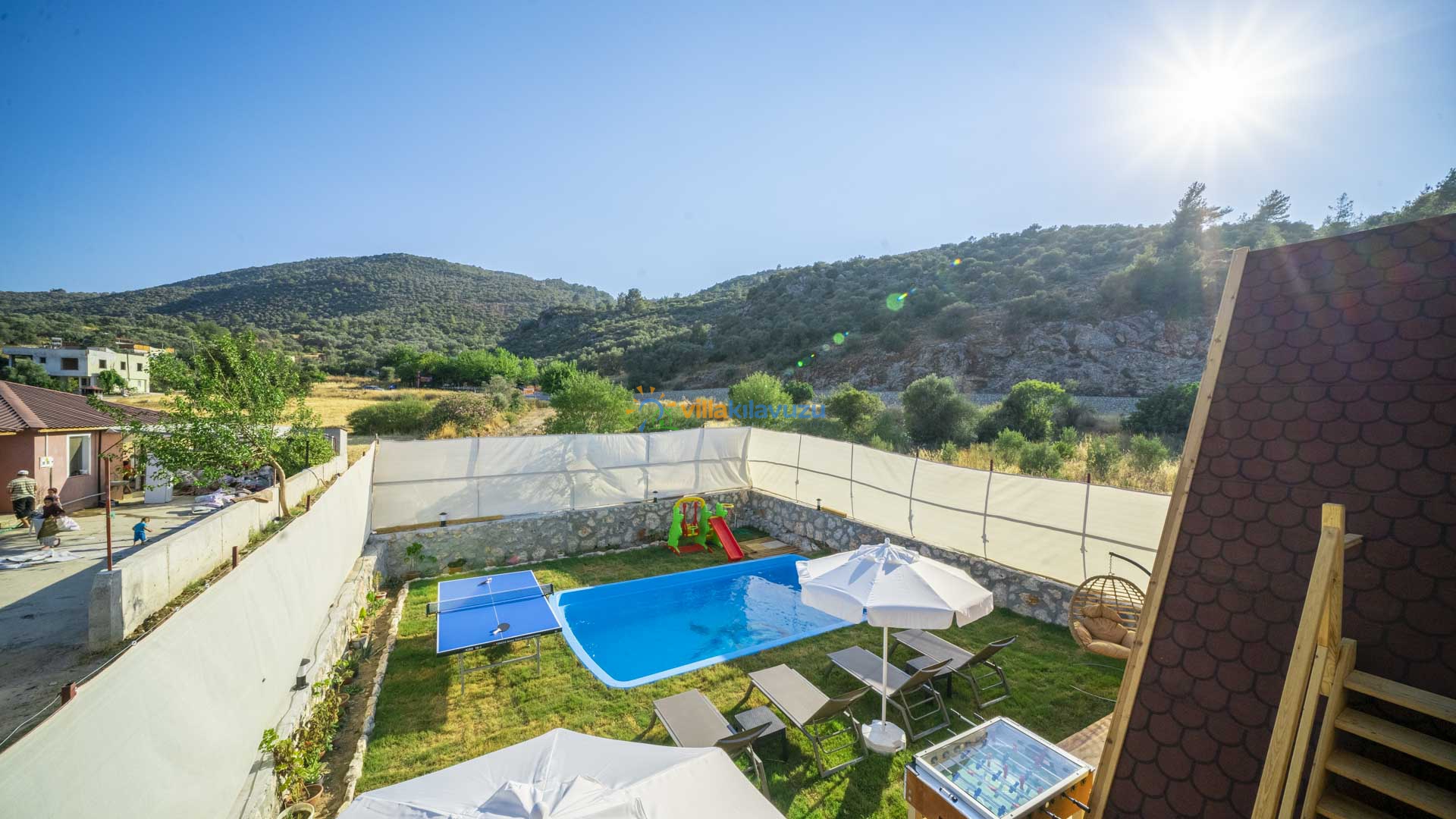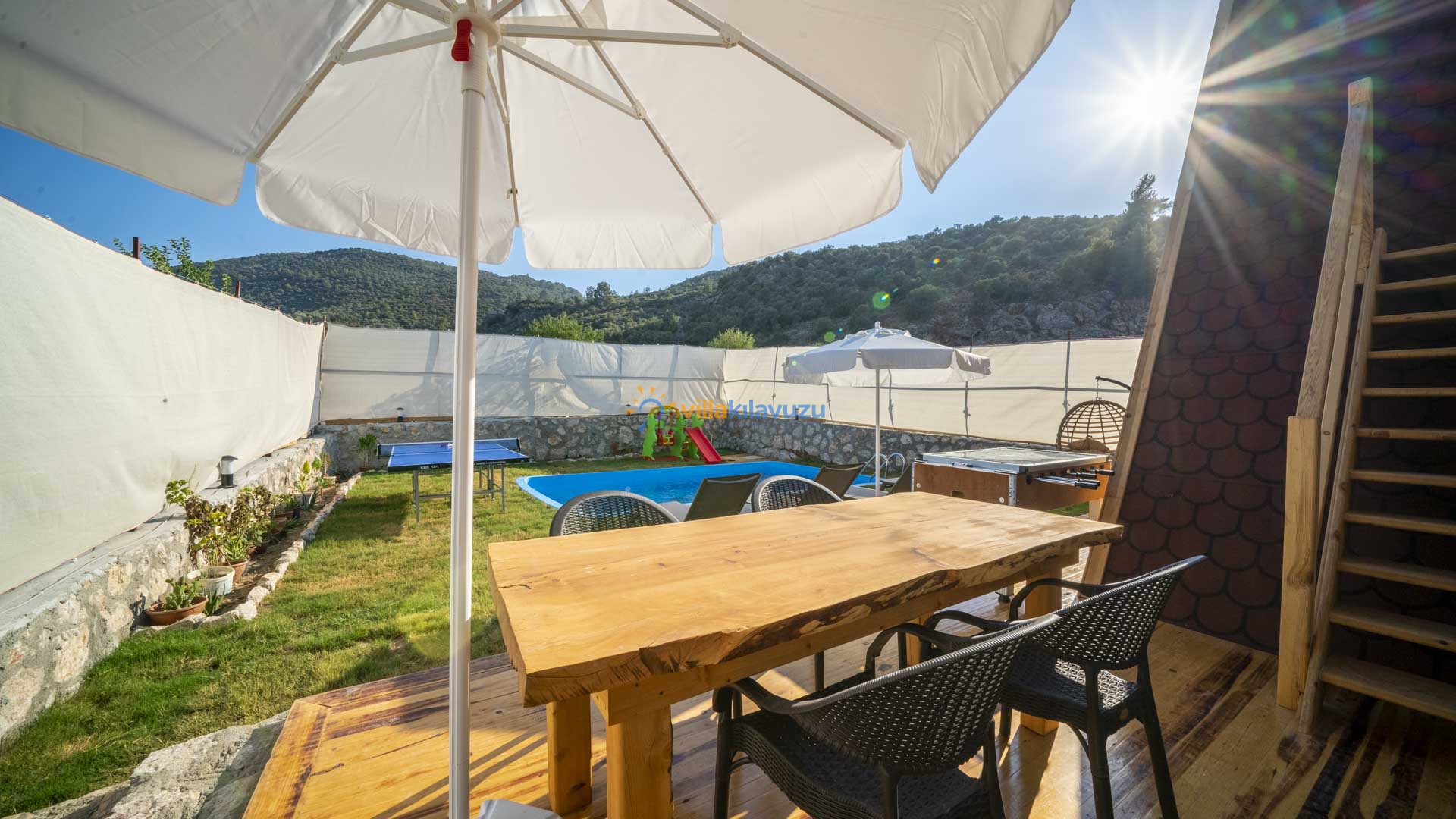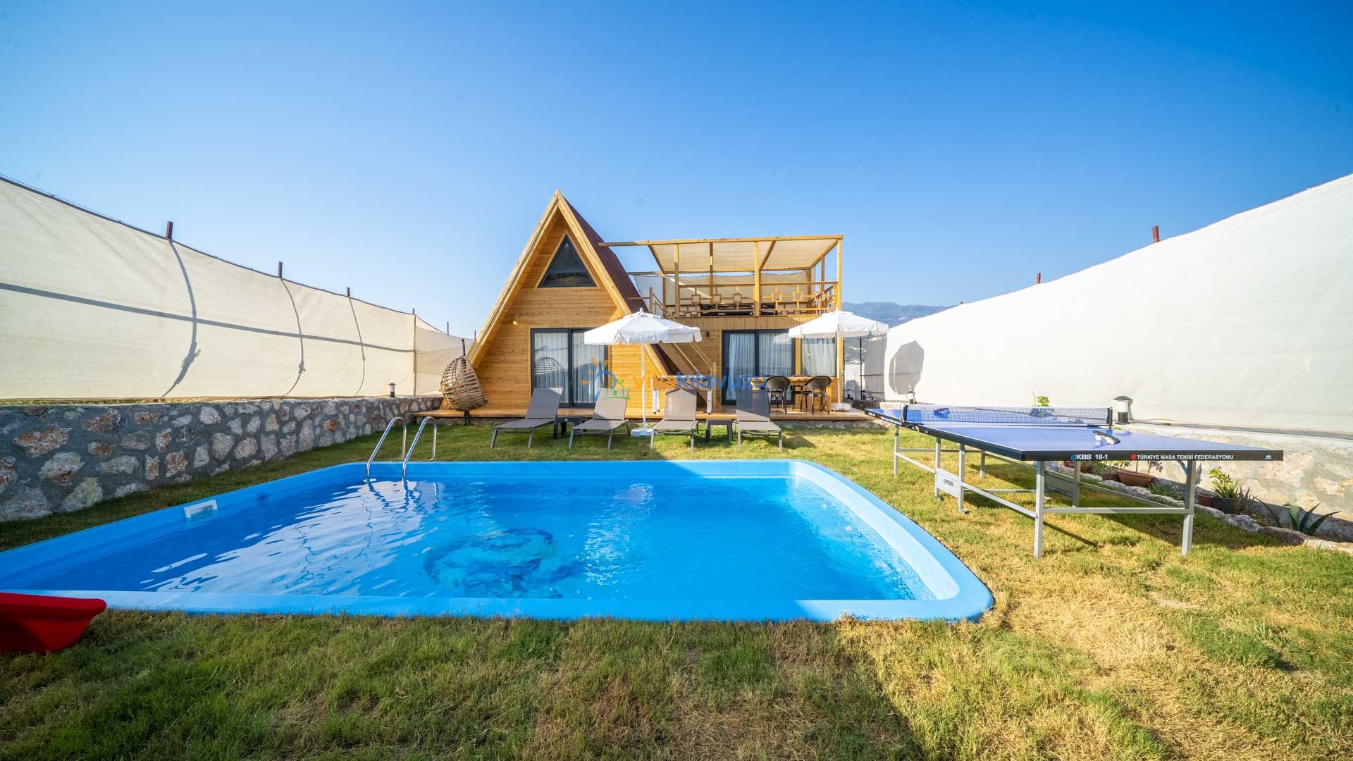 -Villamızın havuz terası korunaklıdır.
