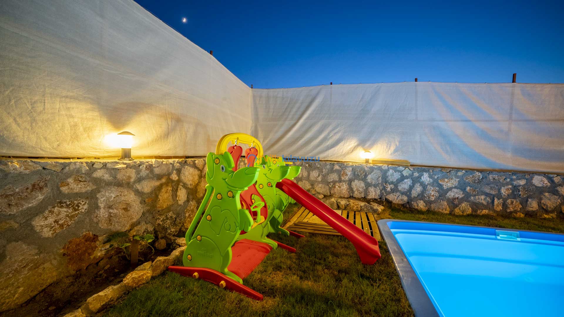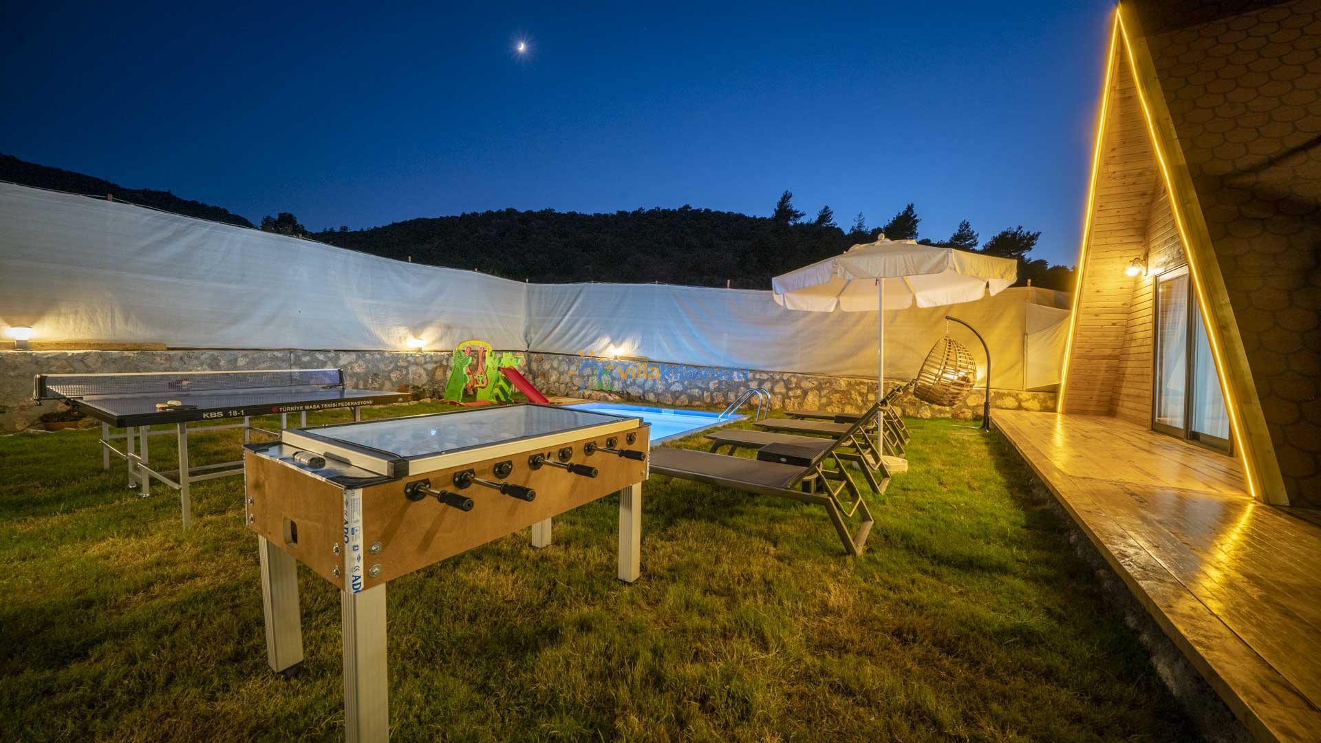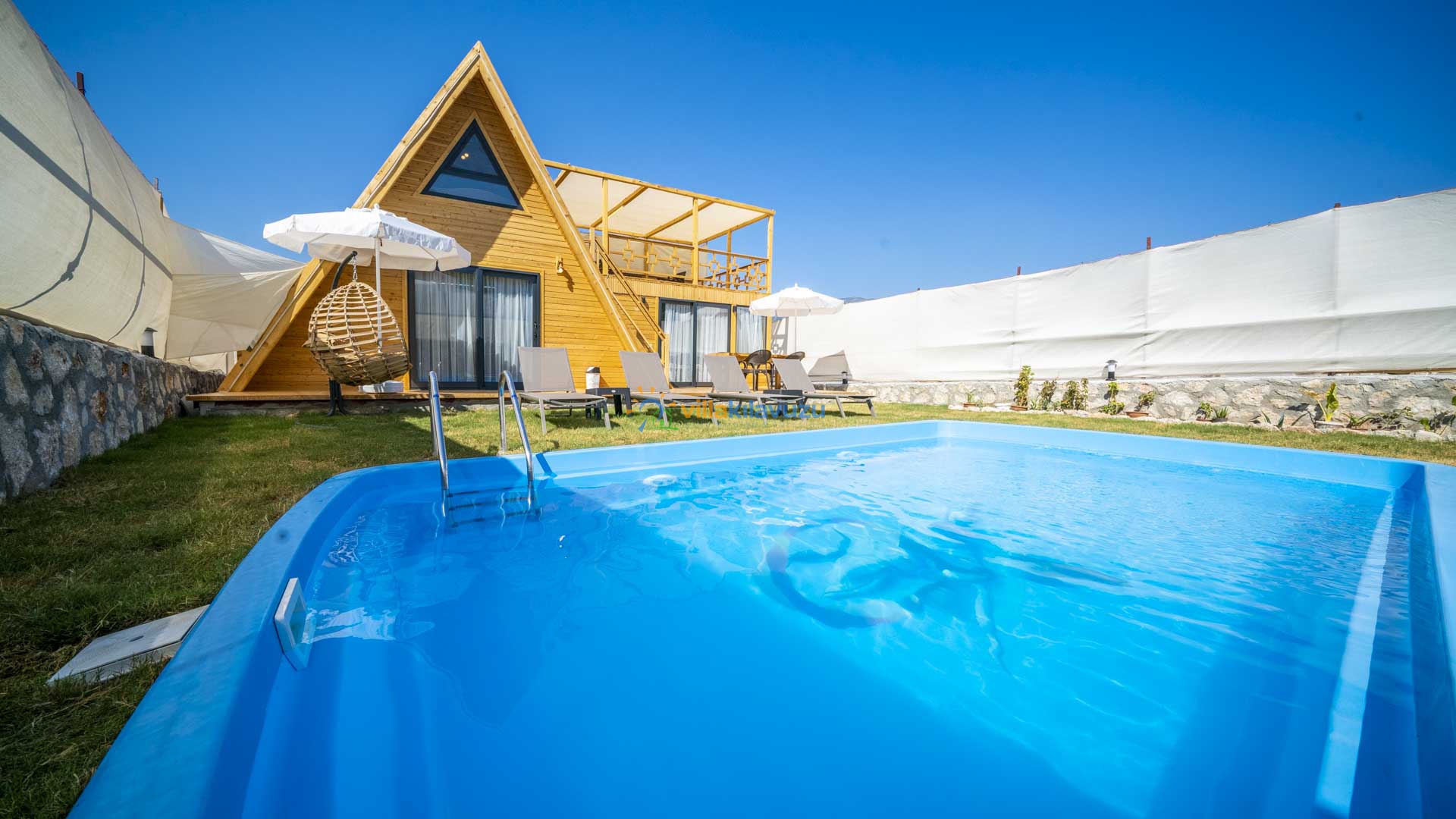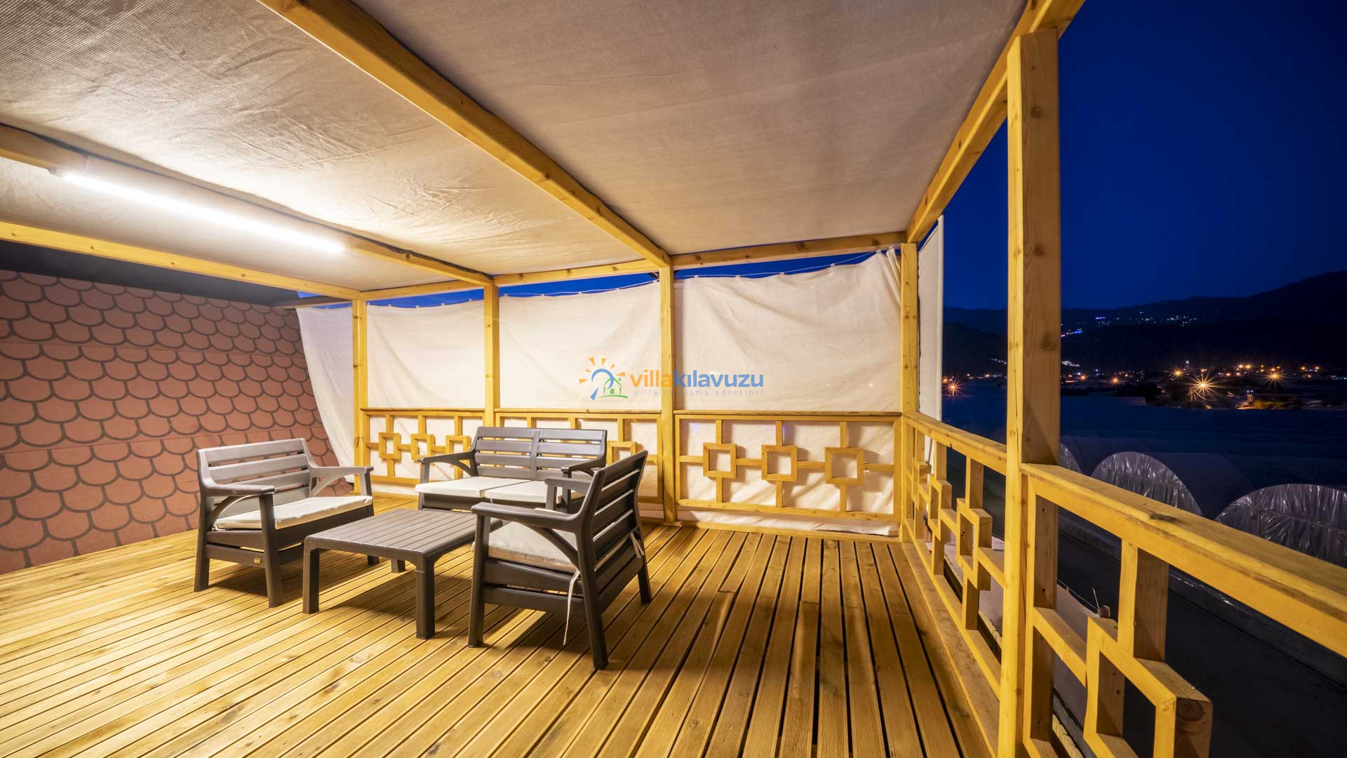 -Villamızın havuz terası korunaklıdır.