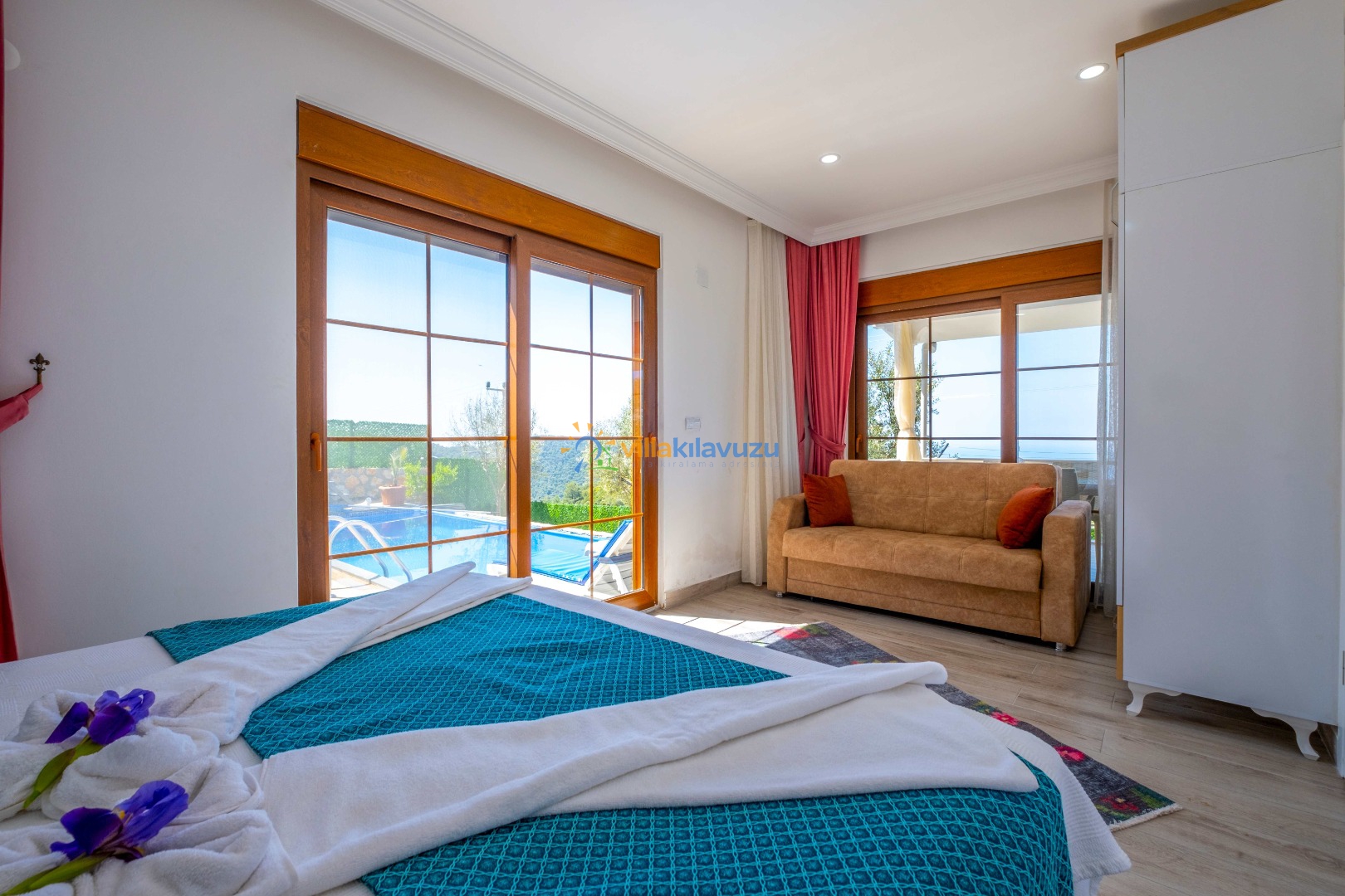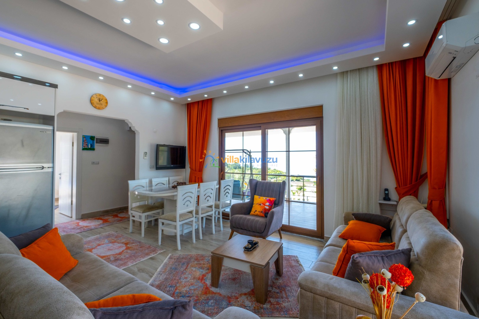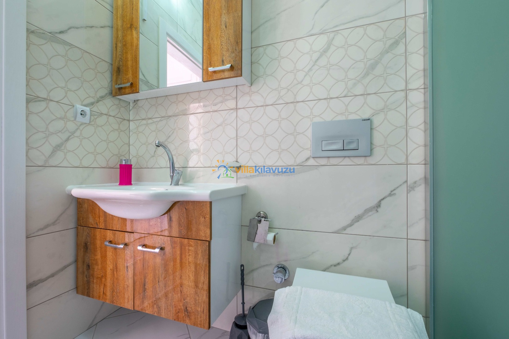 -Villamız 1 yatak odasına sahip olup 2 kişilik konaklama kapasitesine sahiptir.