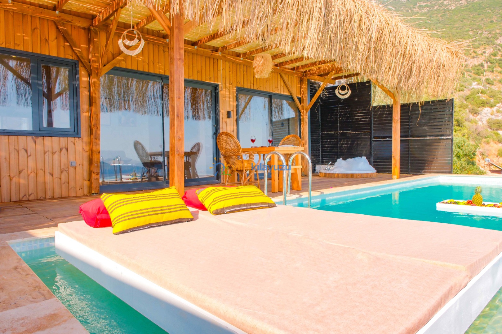-Villamızın havuz terası korunaklıdır.