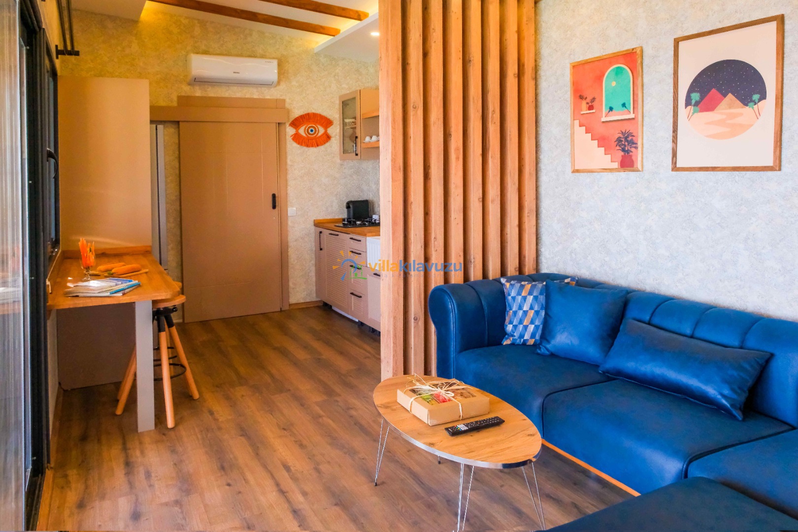 -Villamız 1 yatak odasına sahip olup 2 kişilik konaklama kapasitesine sahiptir.