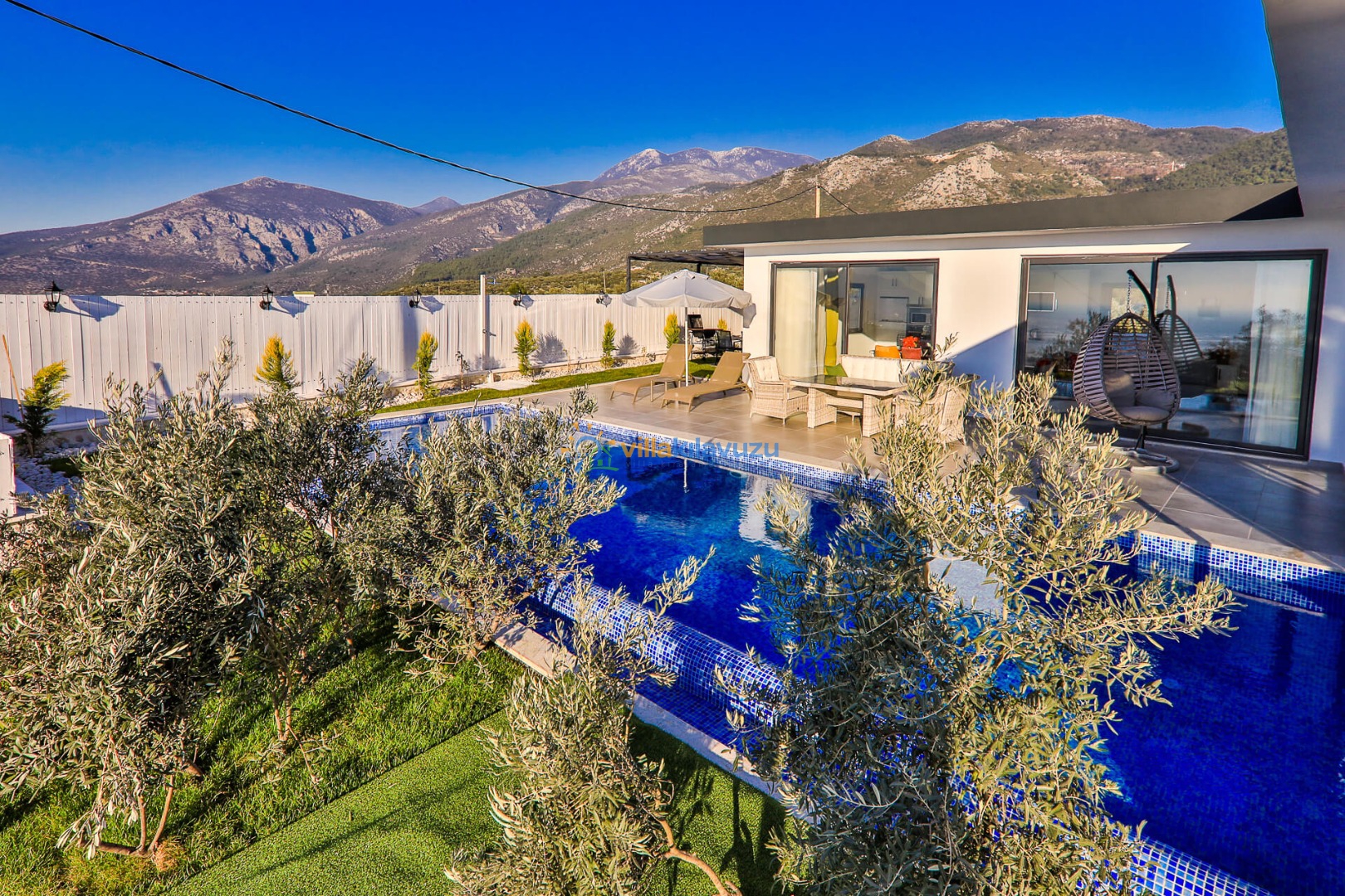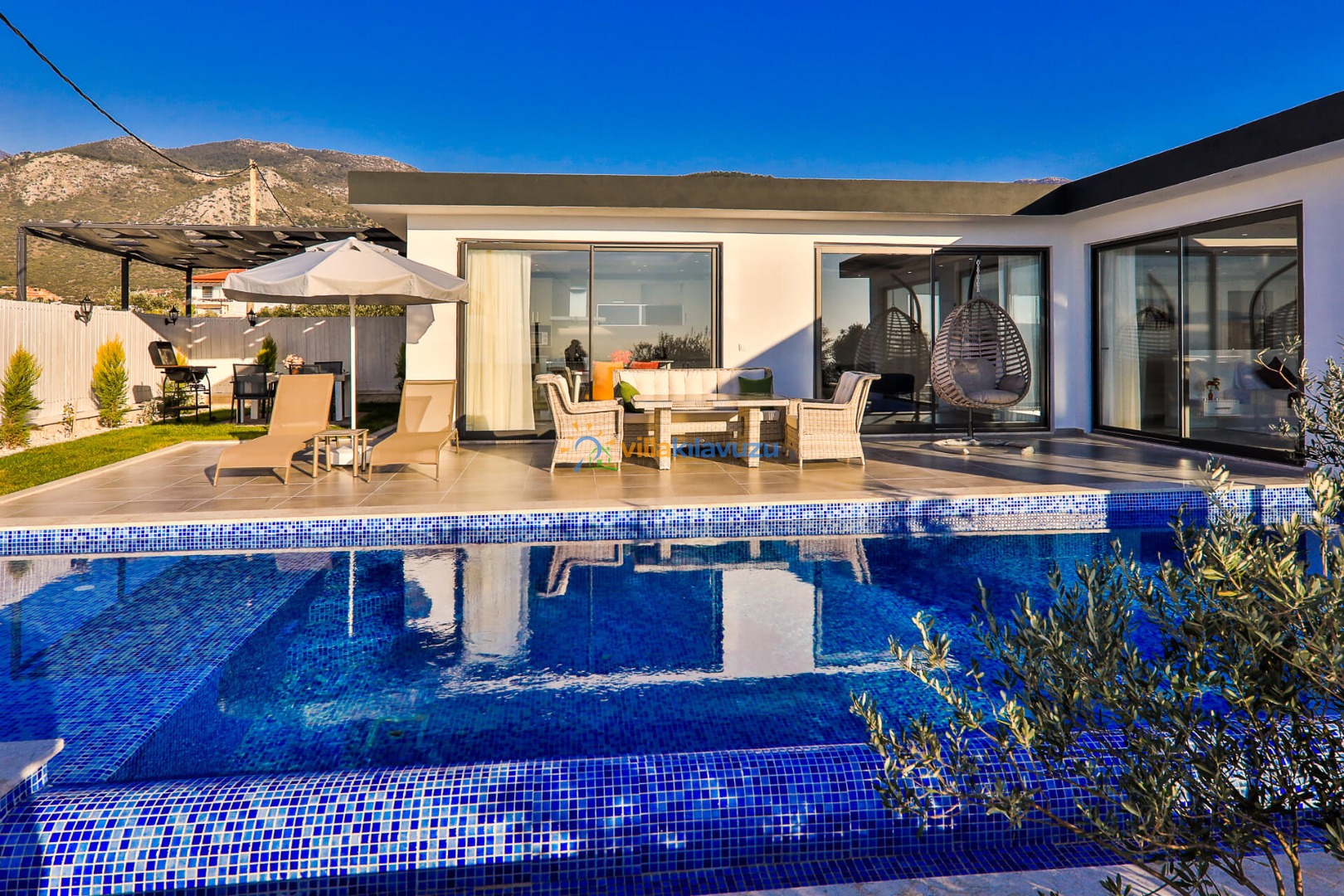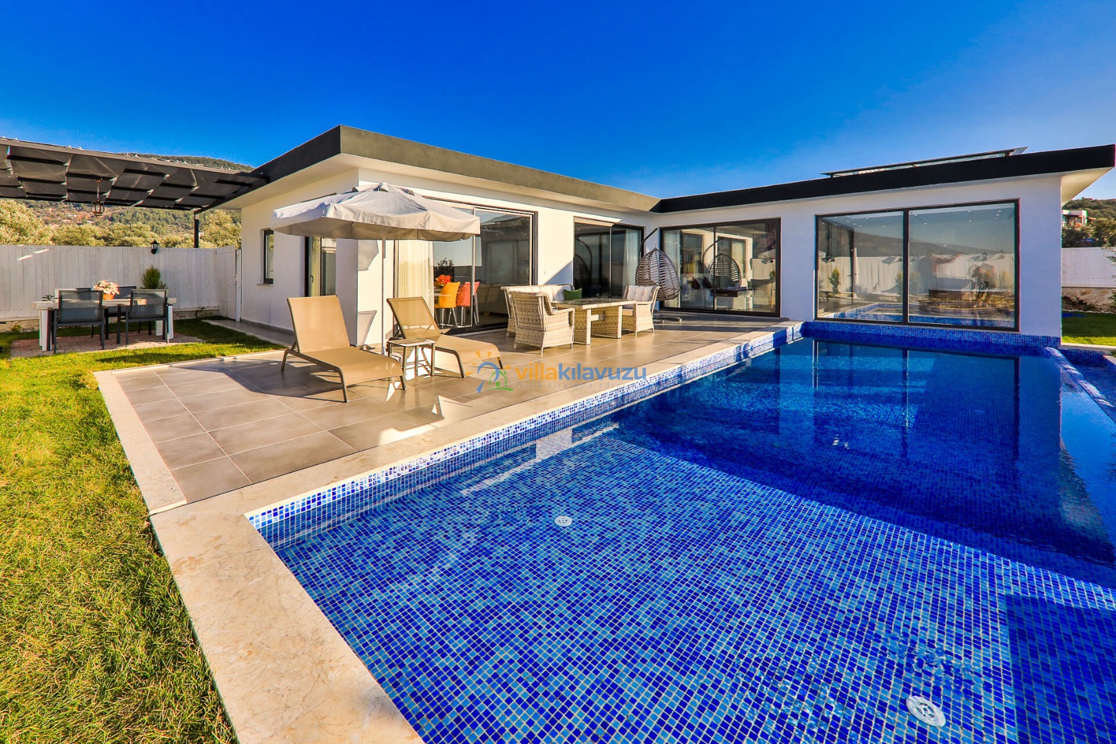 -Villamızın havuz terası korunaklıdır.