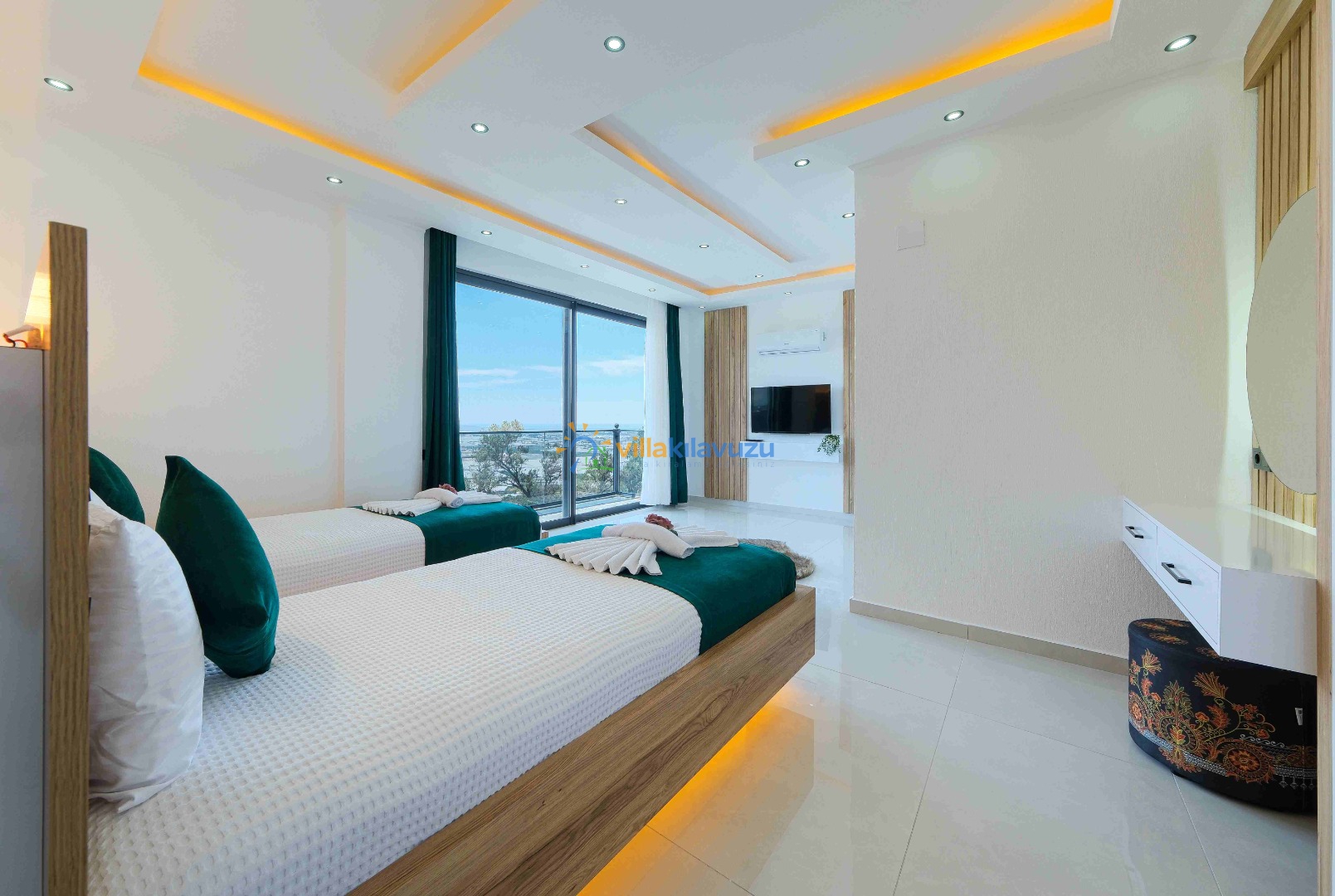 -Villamız 2 yatak odasına sahip olup 4 kişilik konaklama kapasitesine sahiptir.