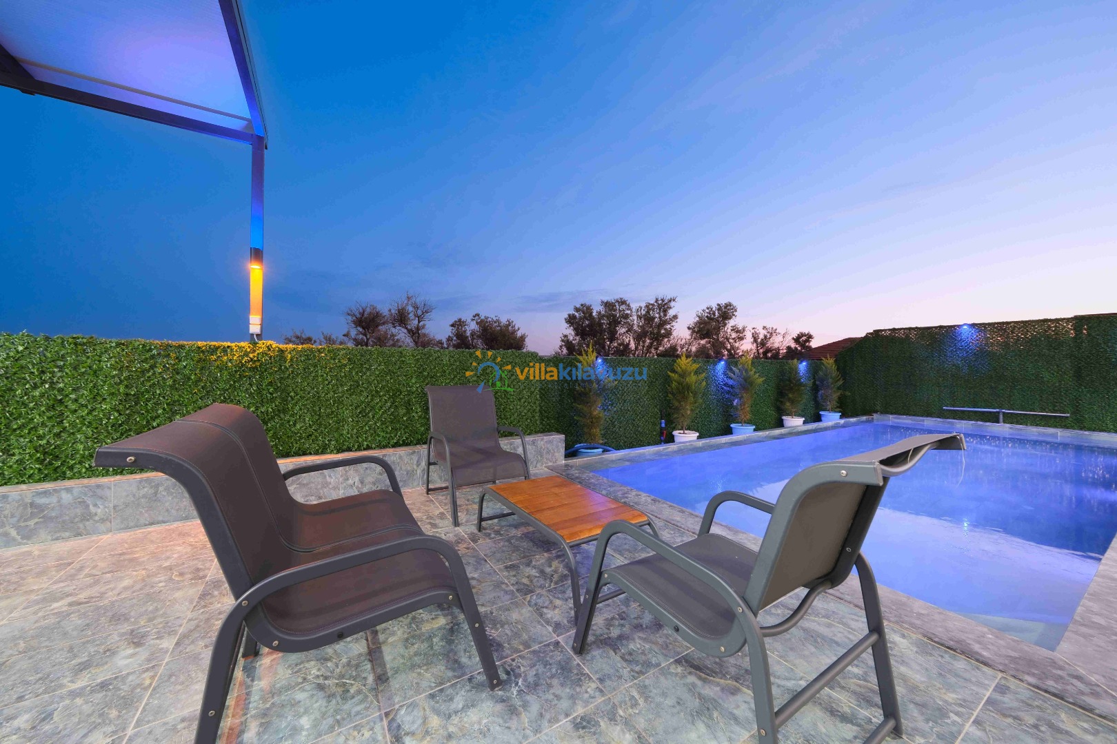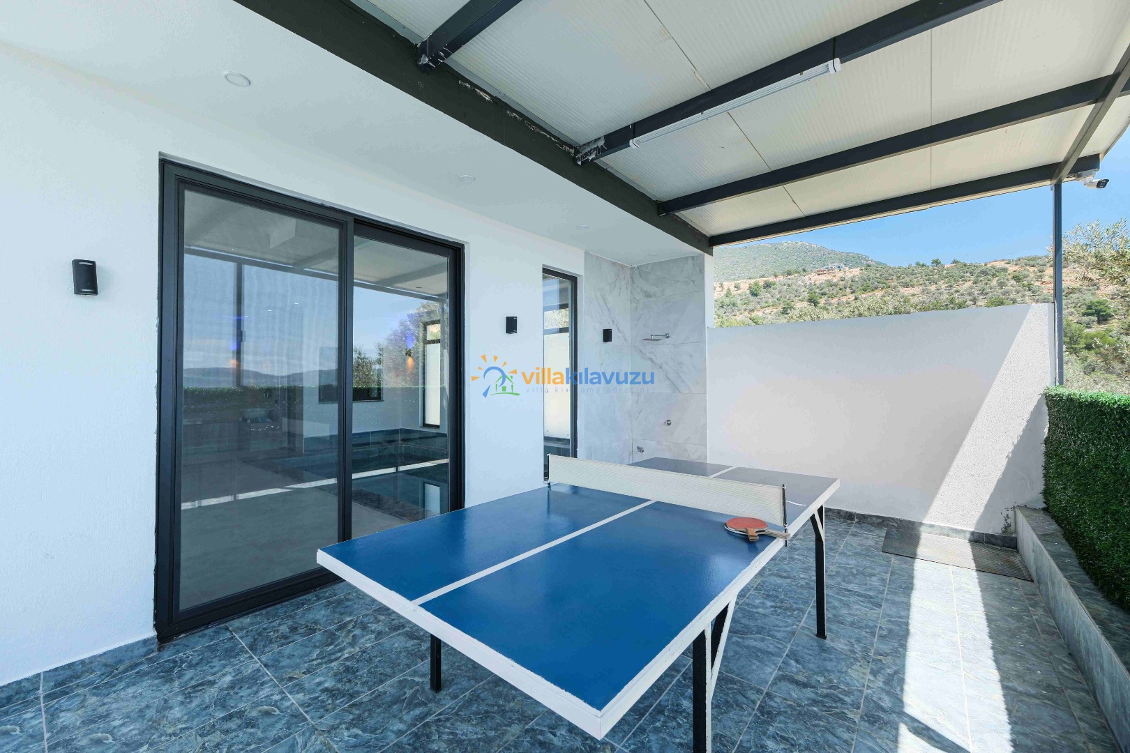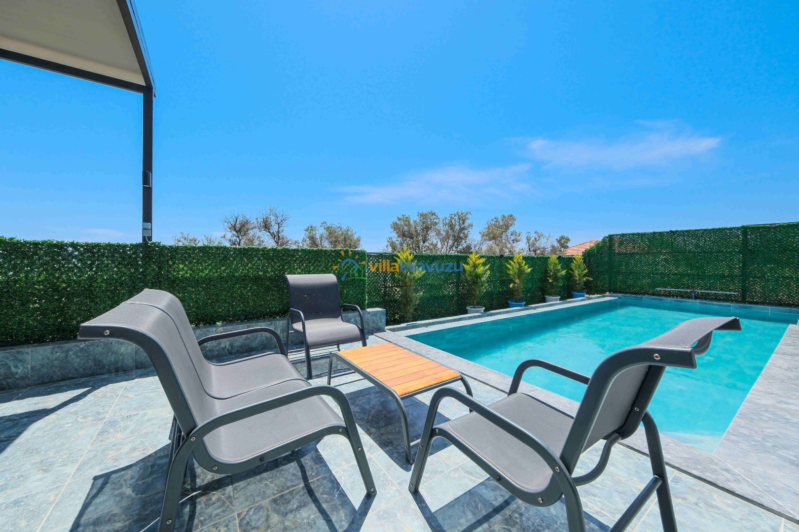 -Villamızın havuz terası korunaklıdır.