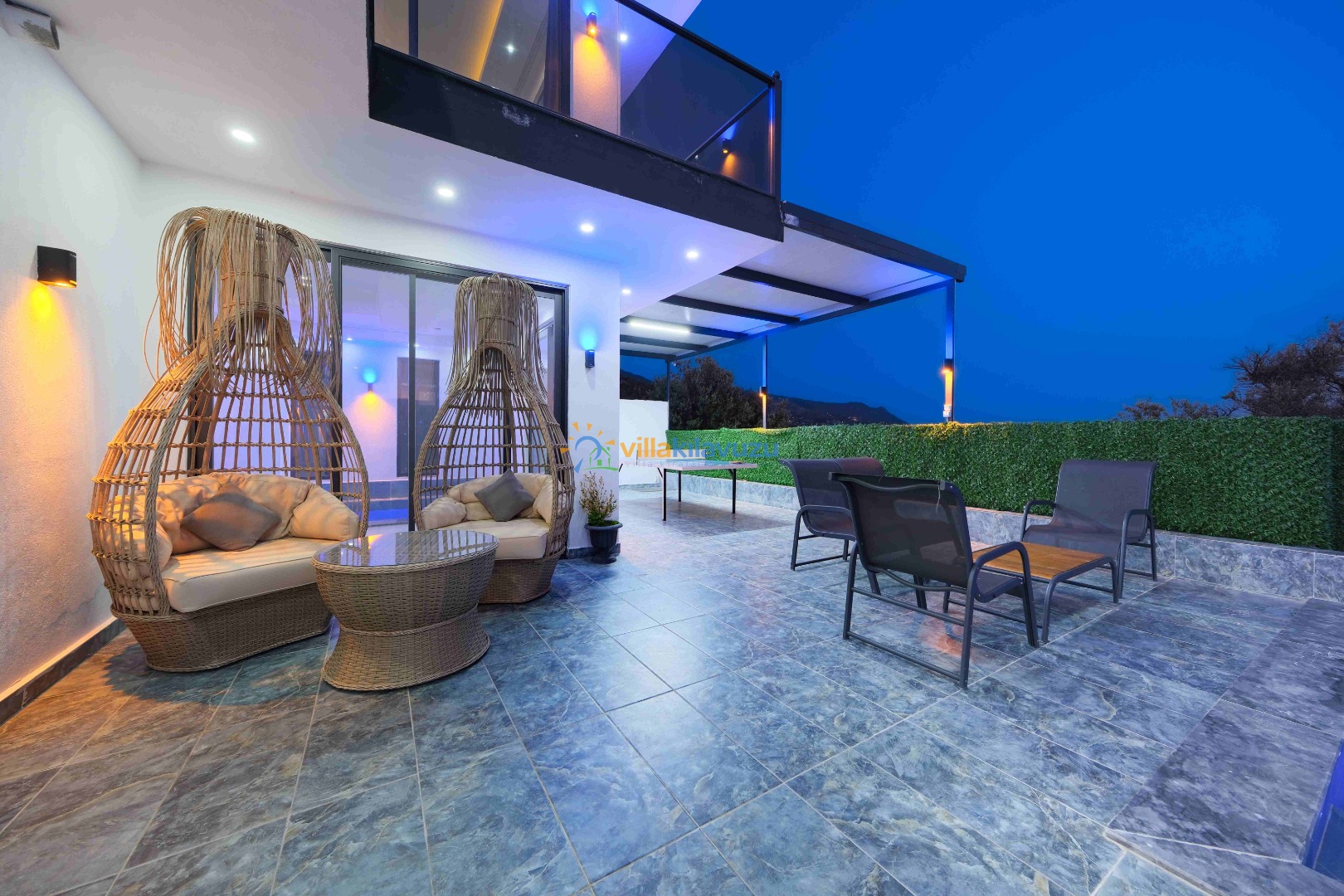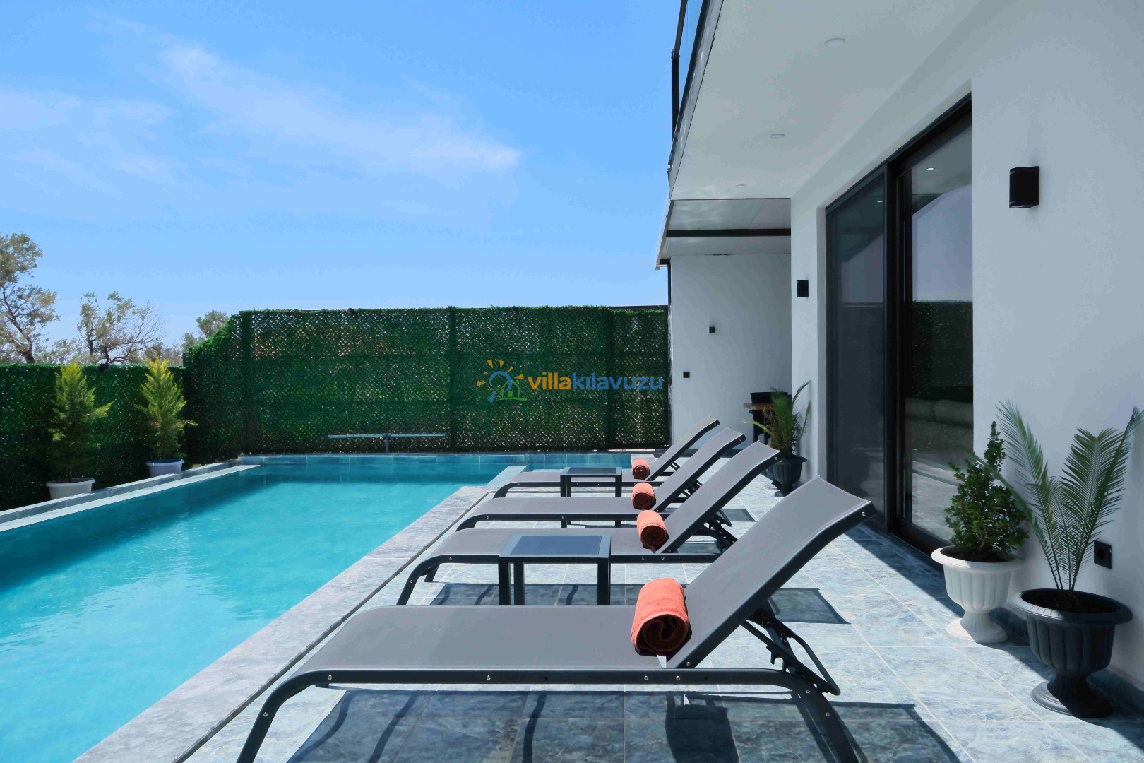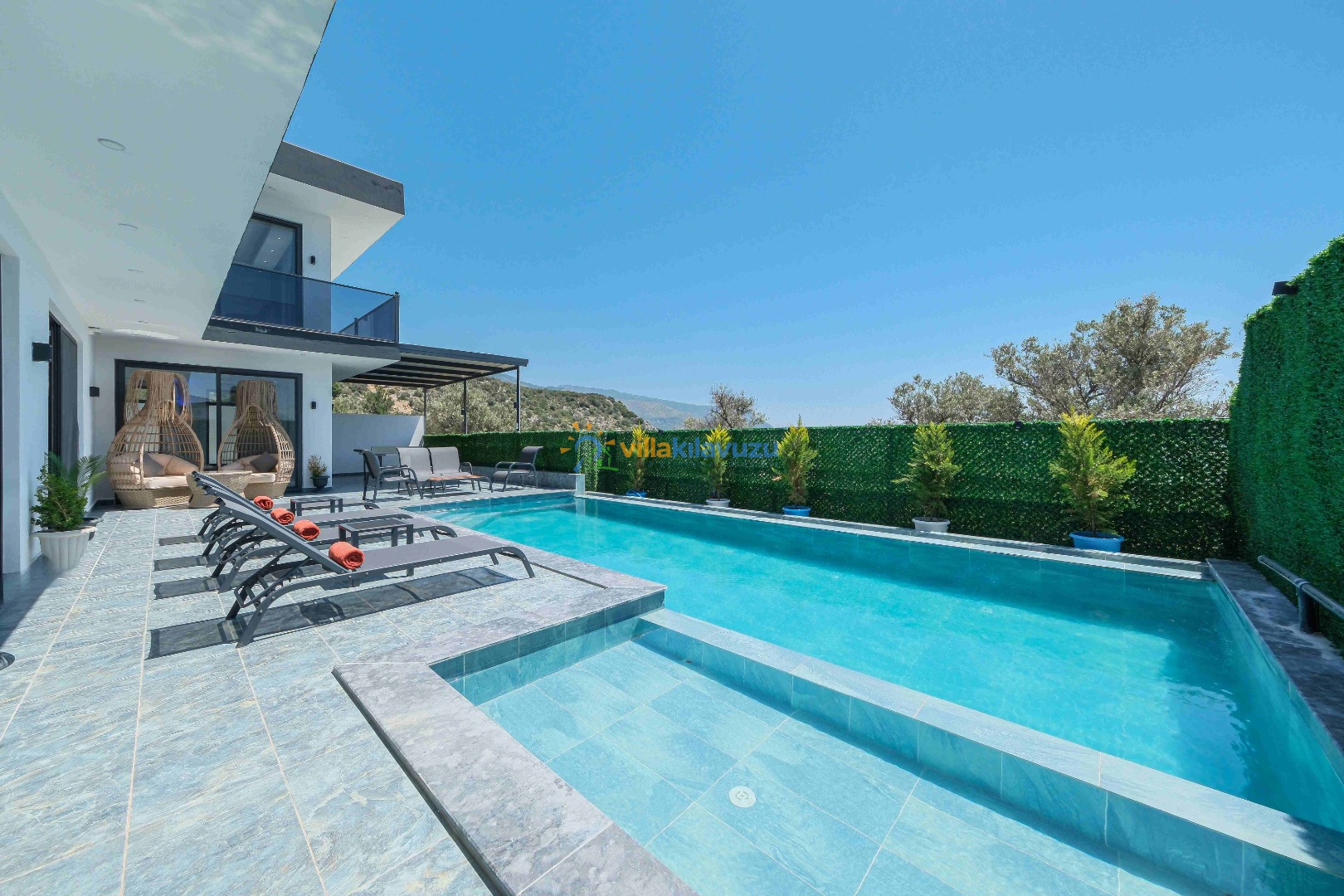 -Villamızın havuz terası korunaklıdır.