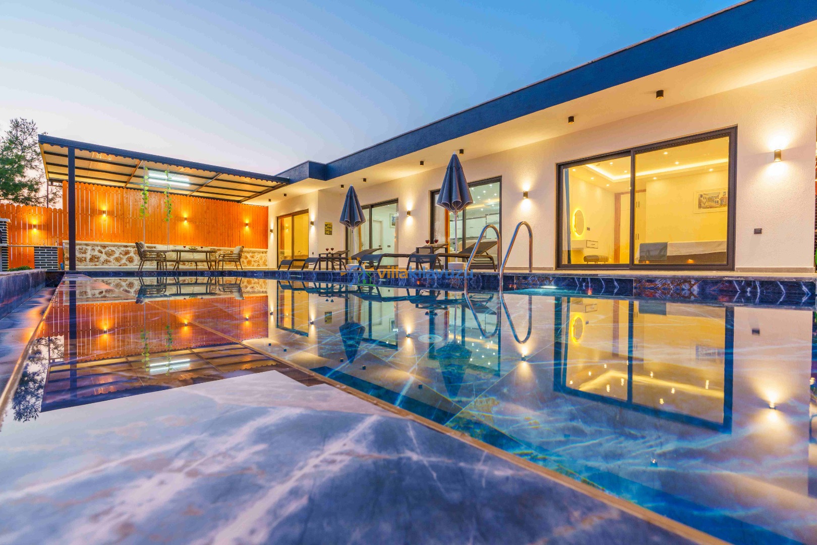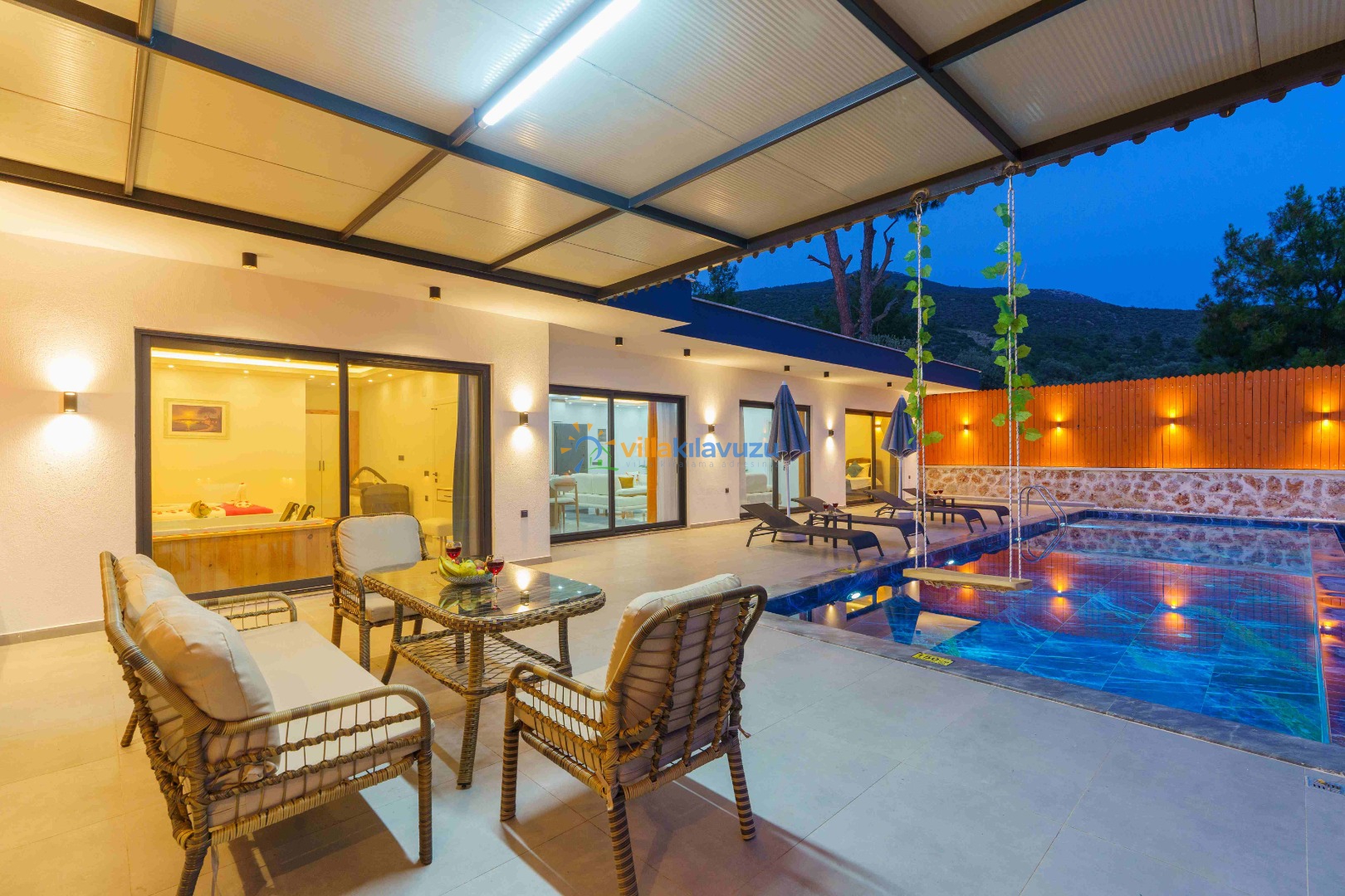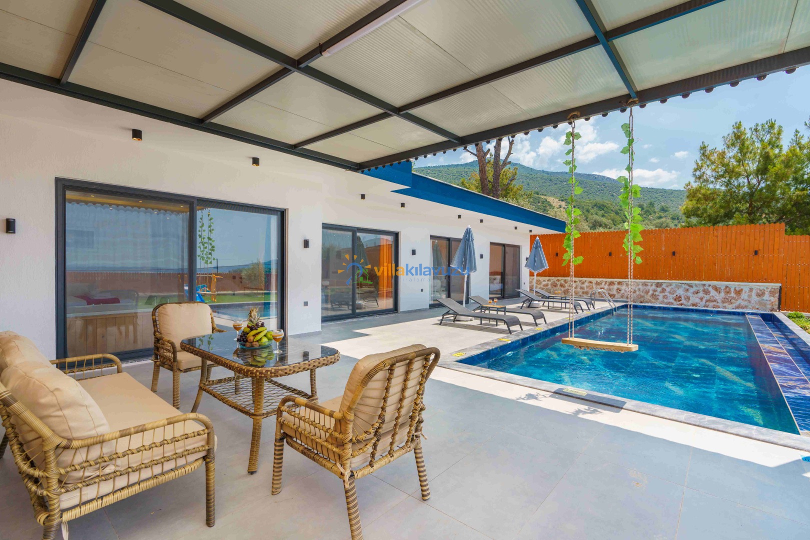 -Villamızın havuz terası korunaklıdır.