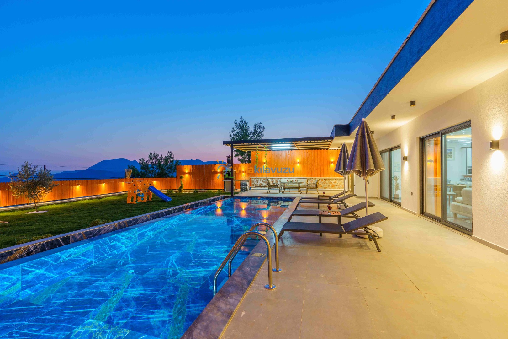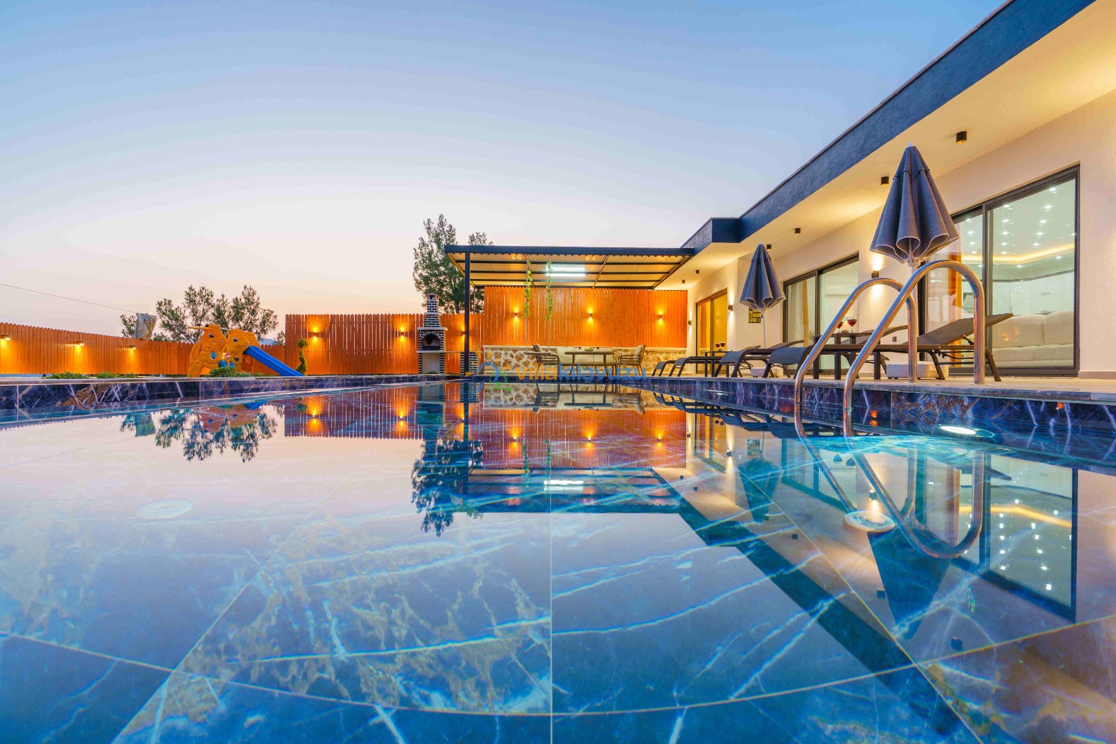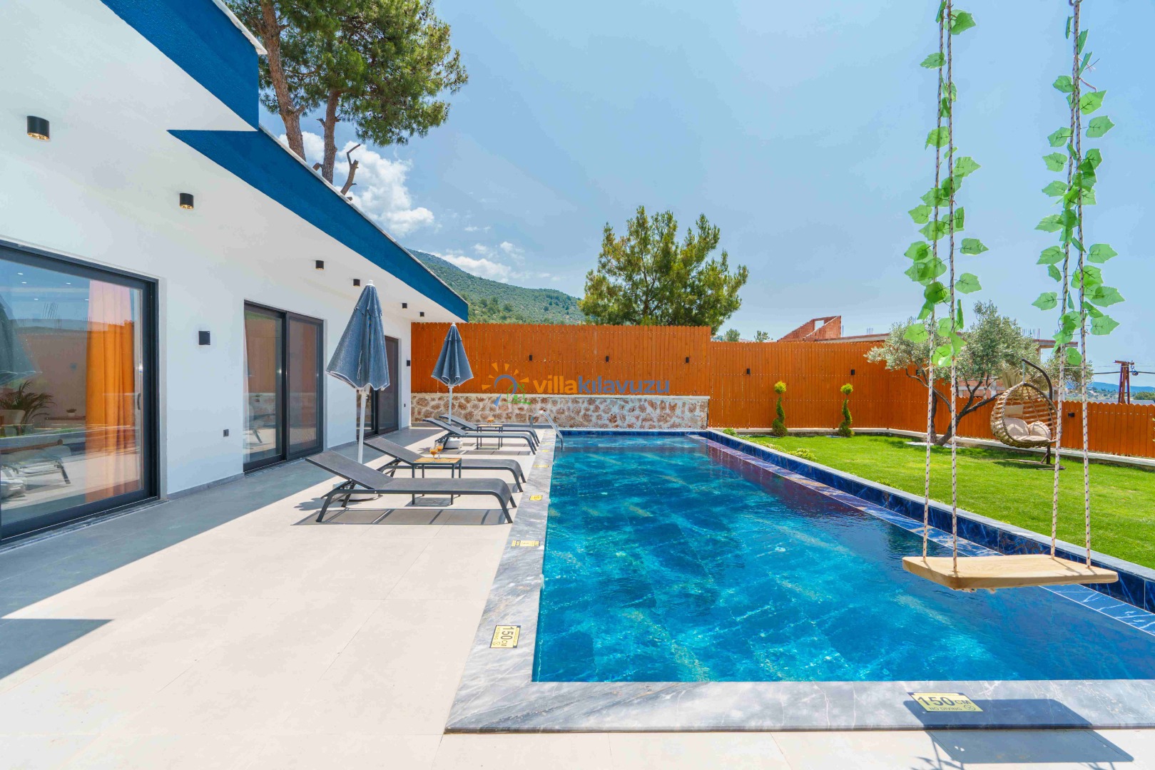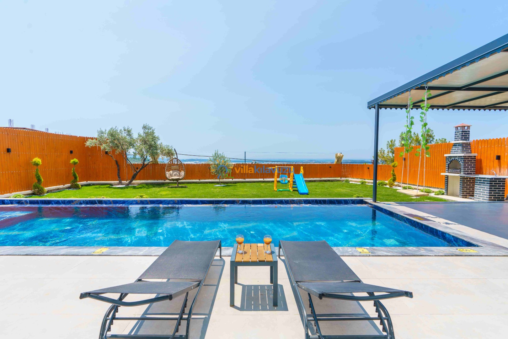 -Villamızın havuz terası korunaklıdır.