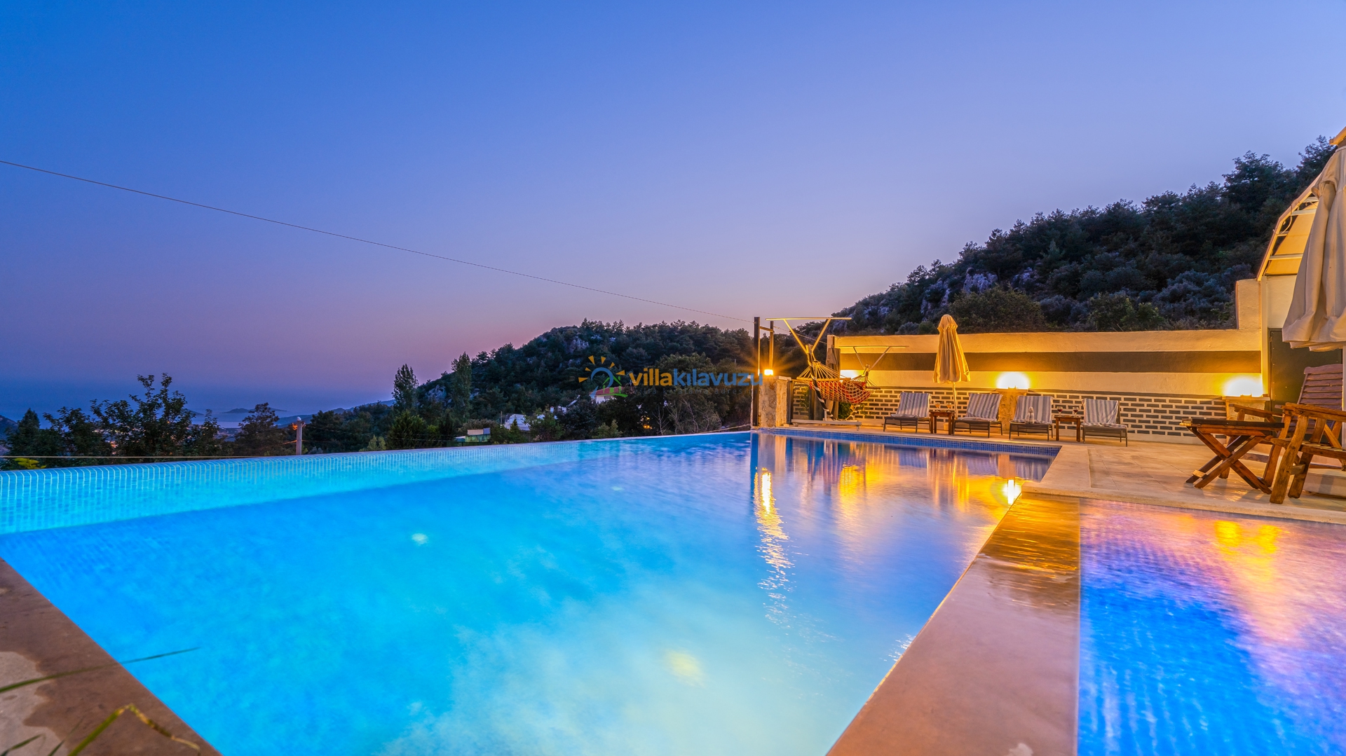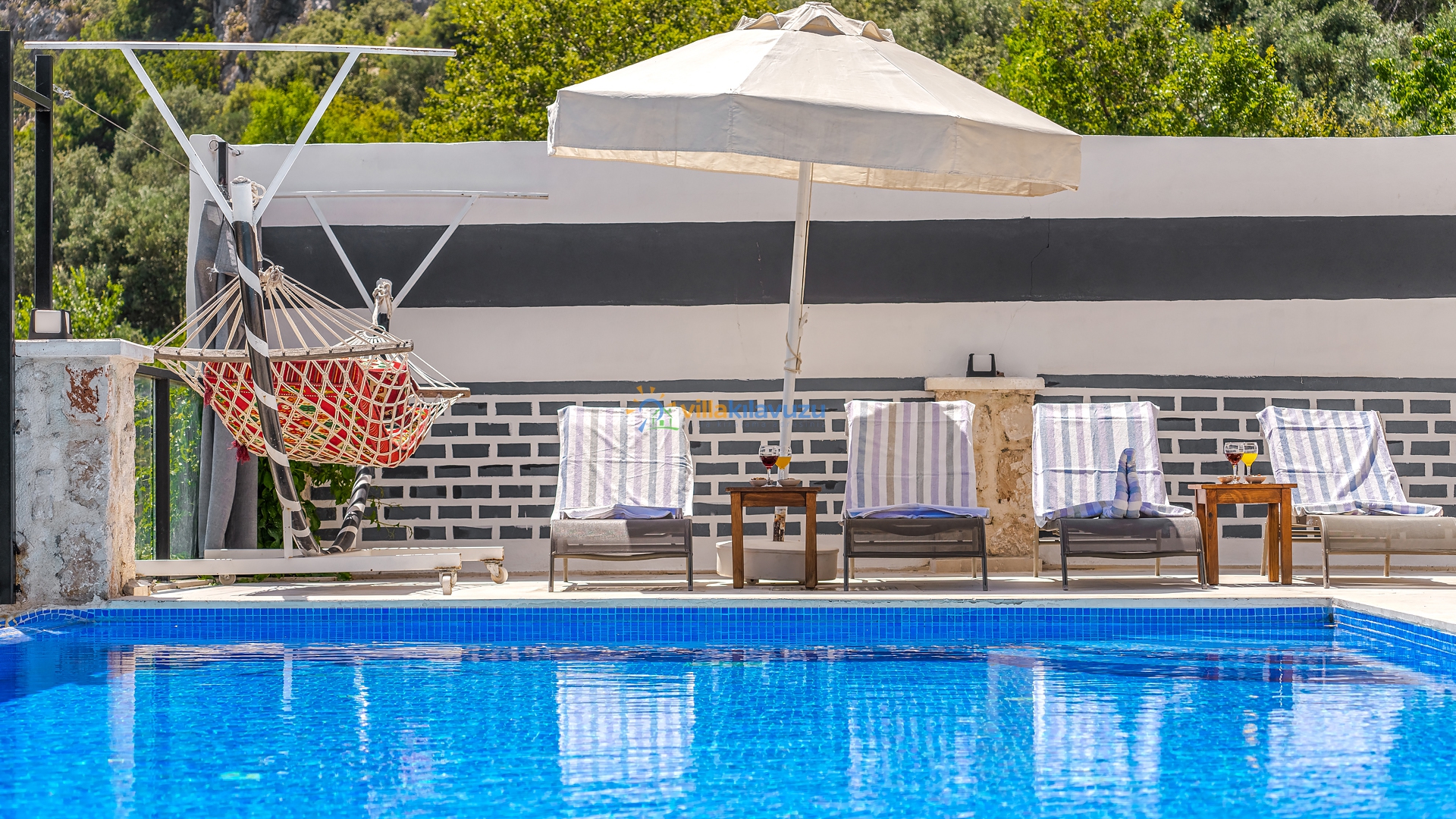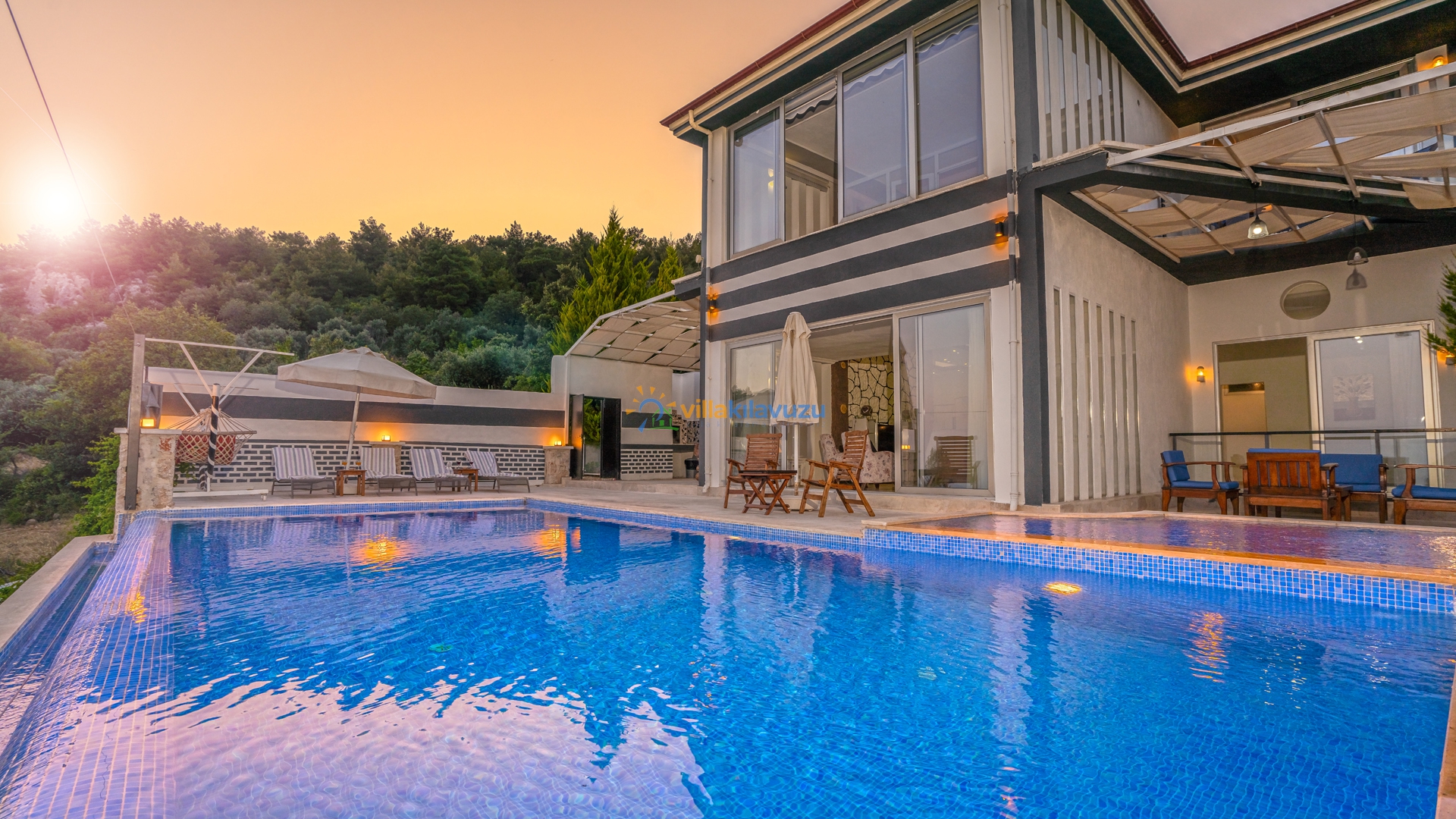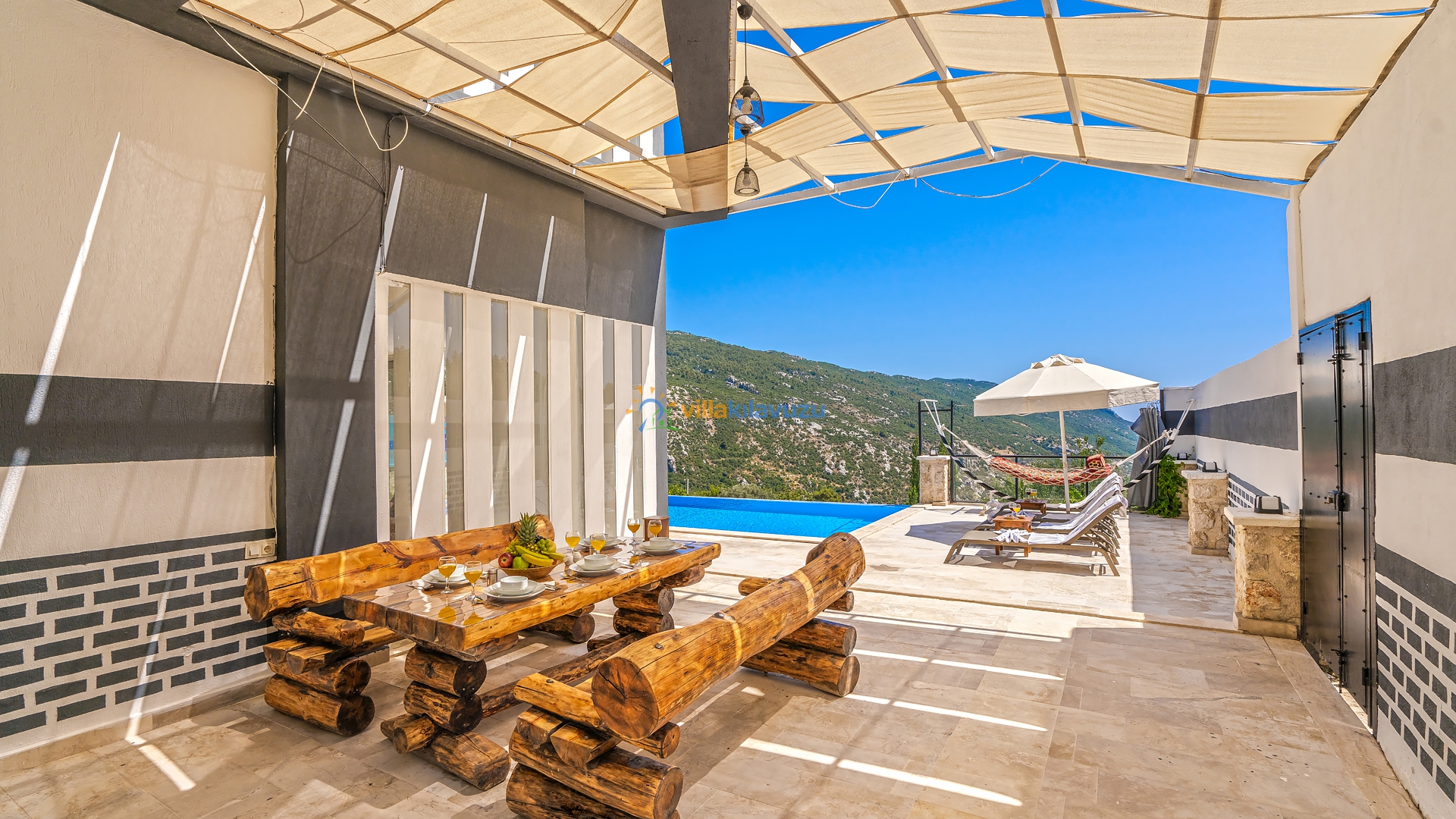 -Villamızın havuz terası korunaklıdır.