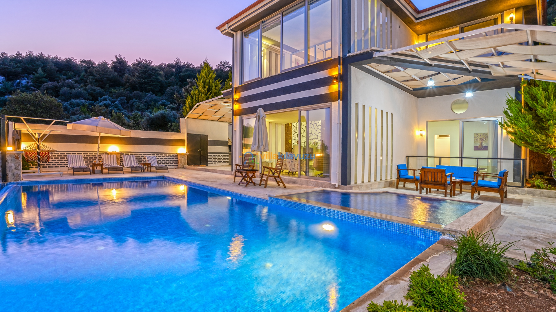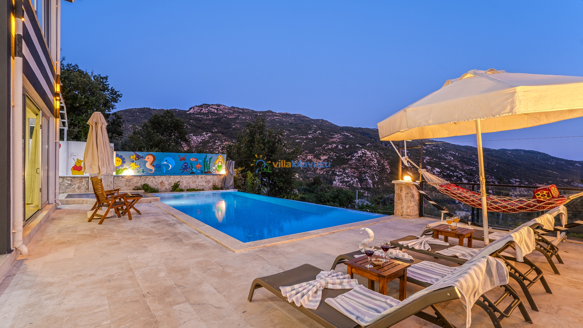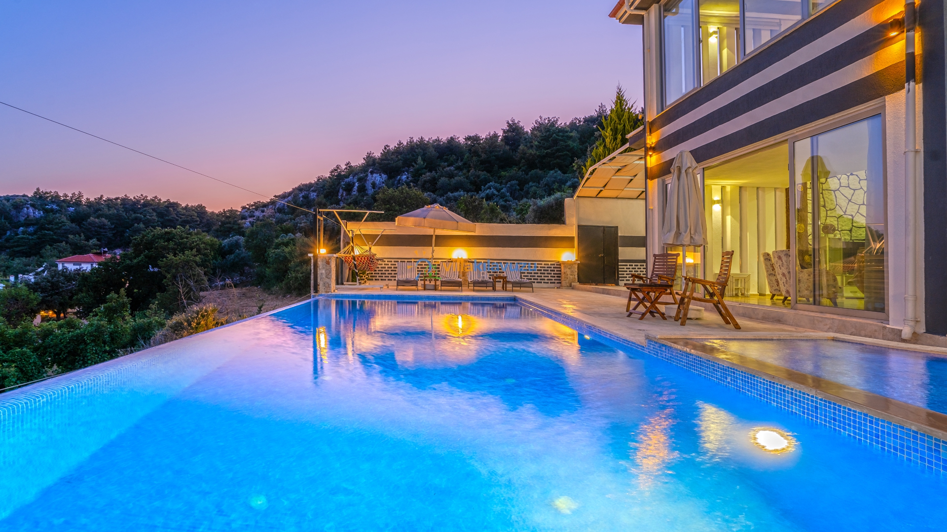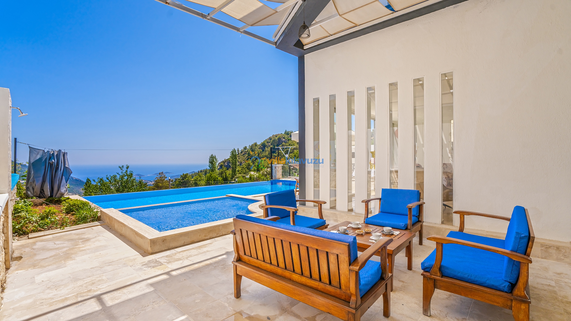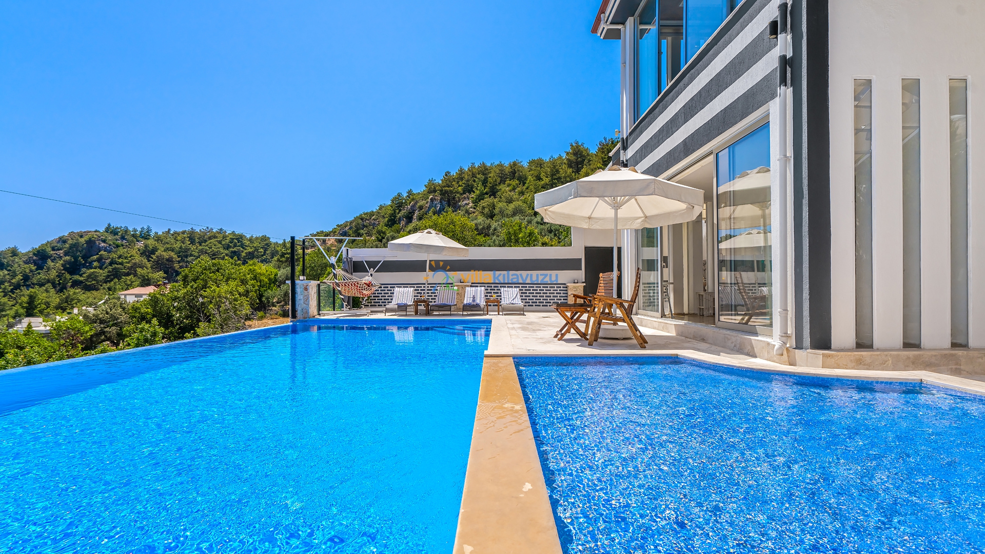 -Villamızın havuz terası korunaklıdır.